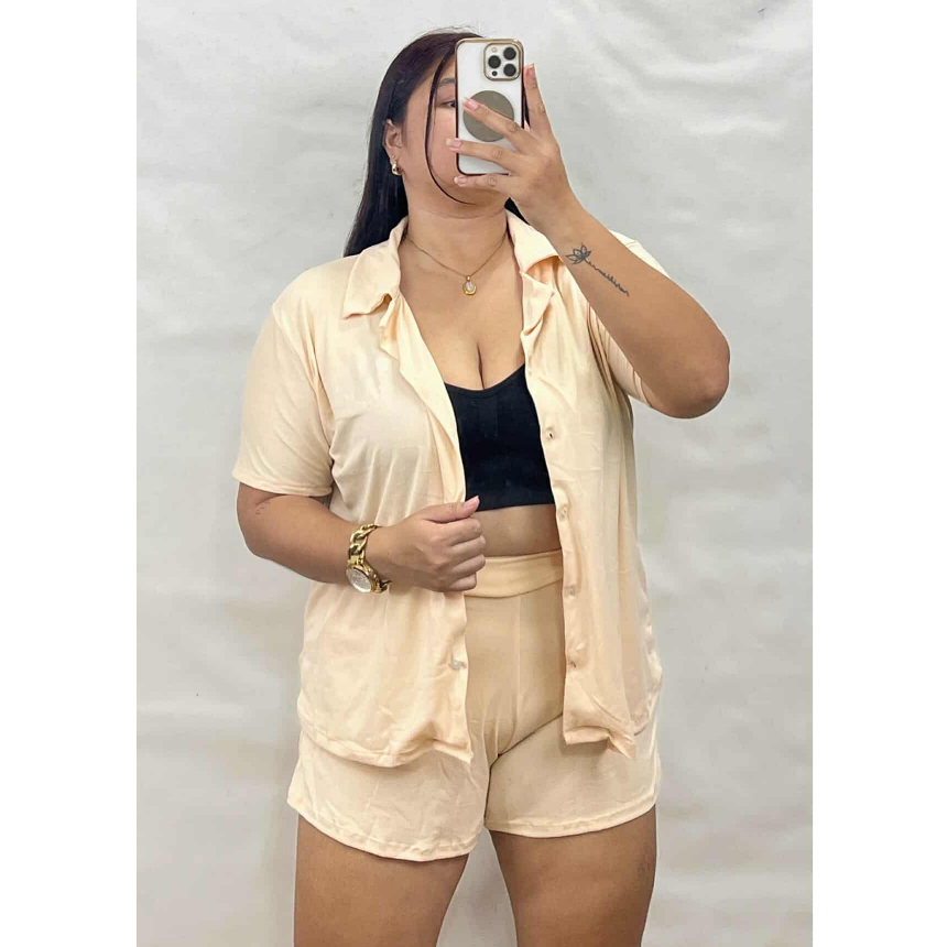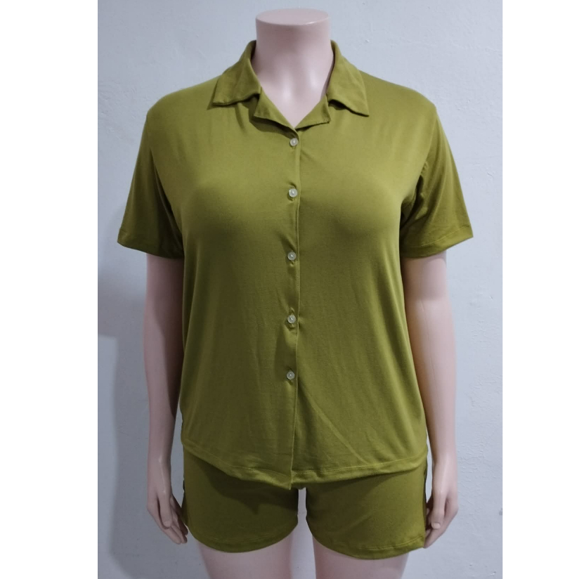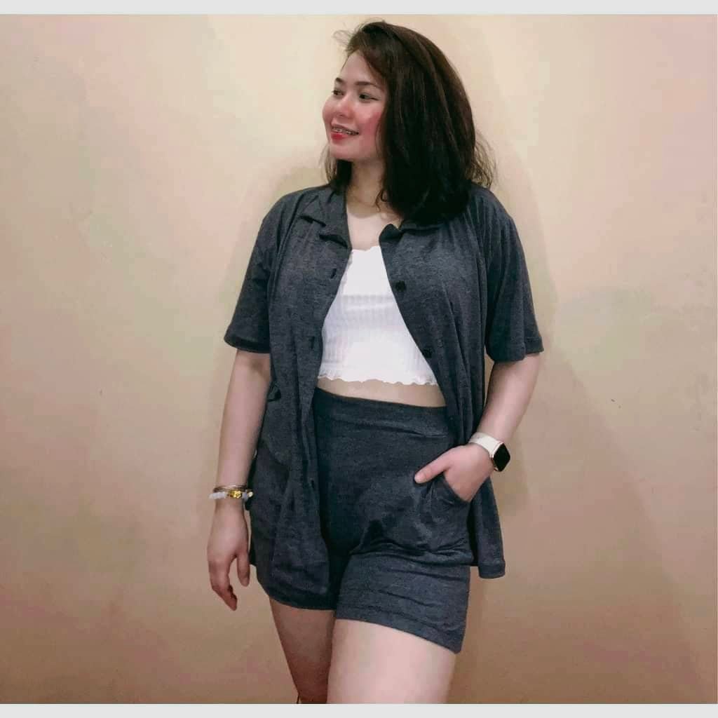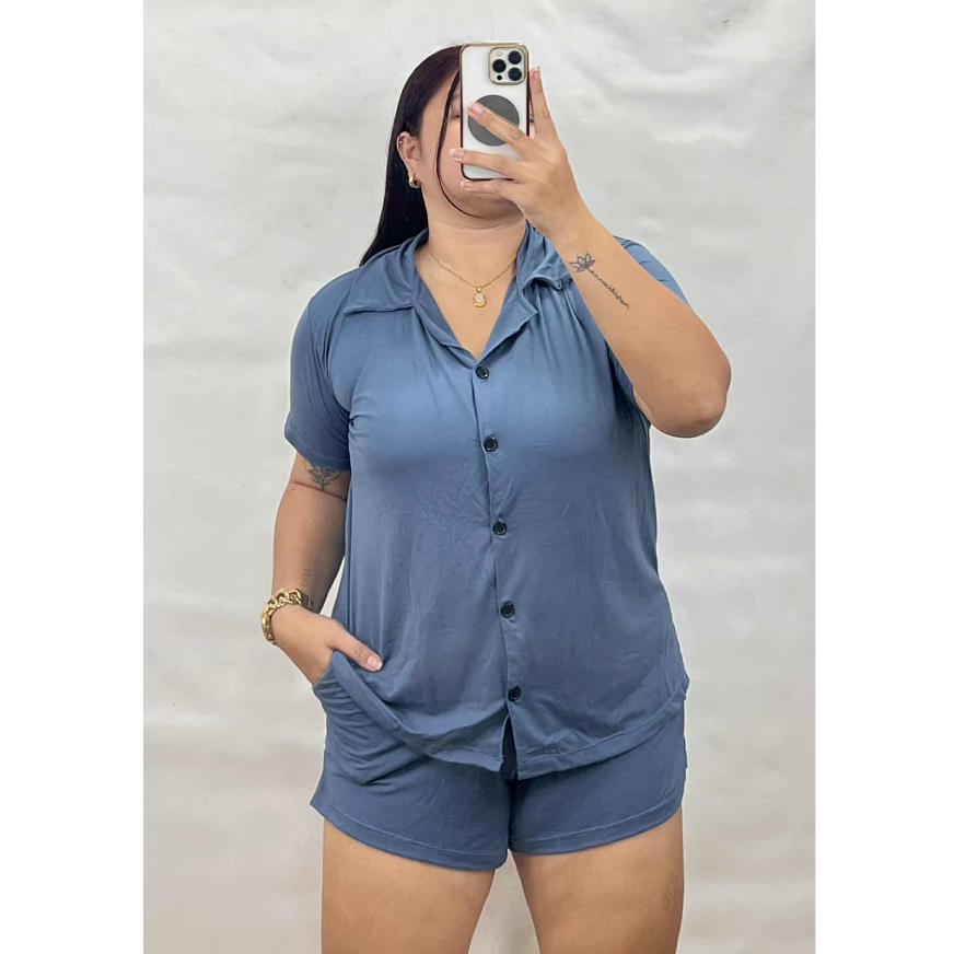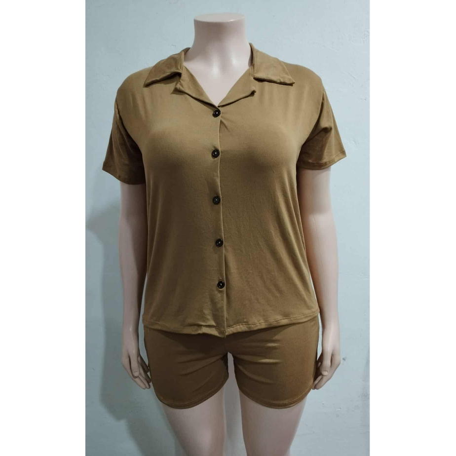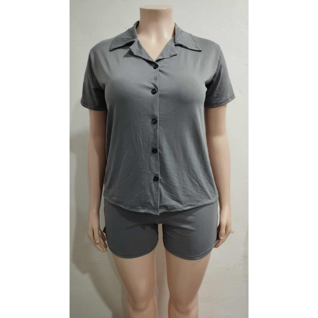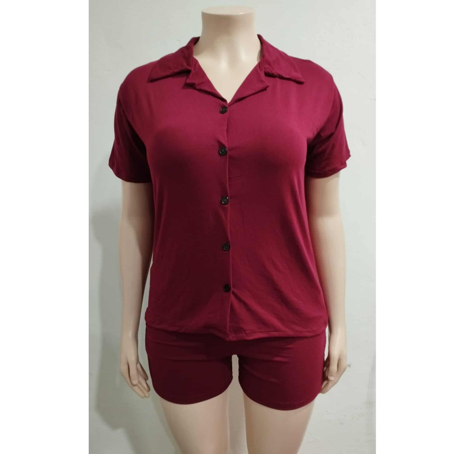 Bsapp : Women Polo Terno Sleepwear Plus Size w/ 2pocket Short (Kasya XL-4XL size) Button Collar