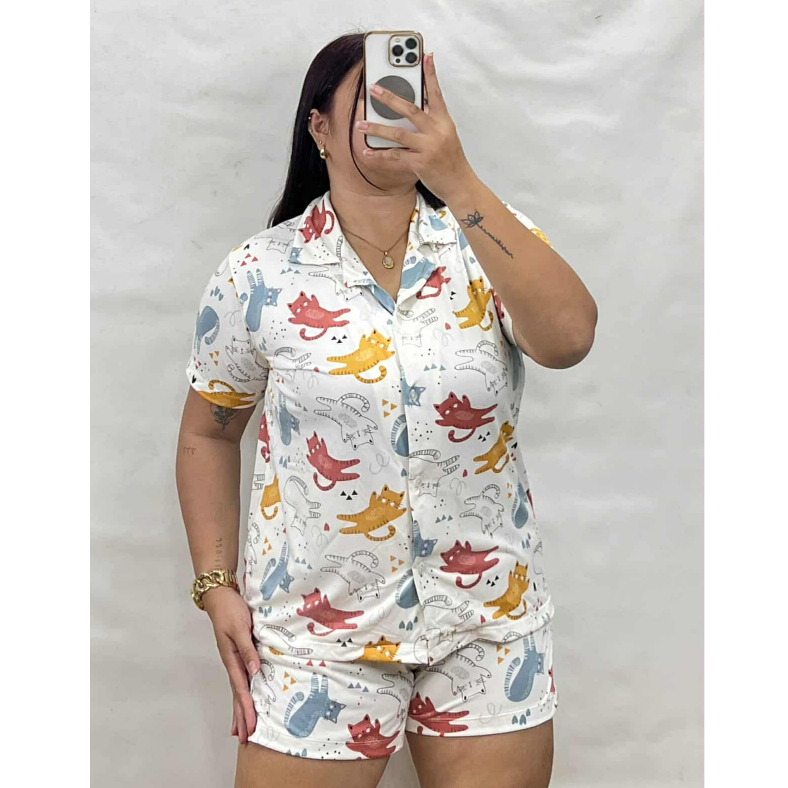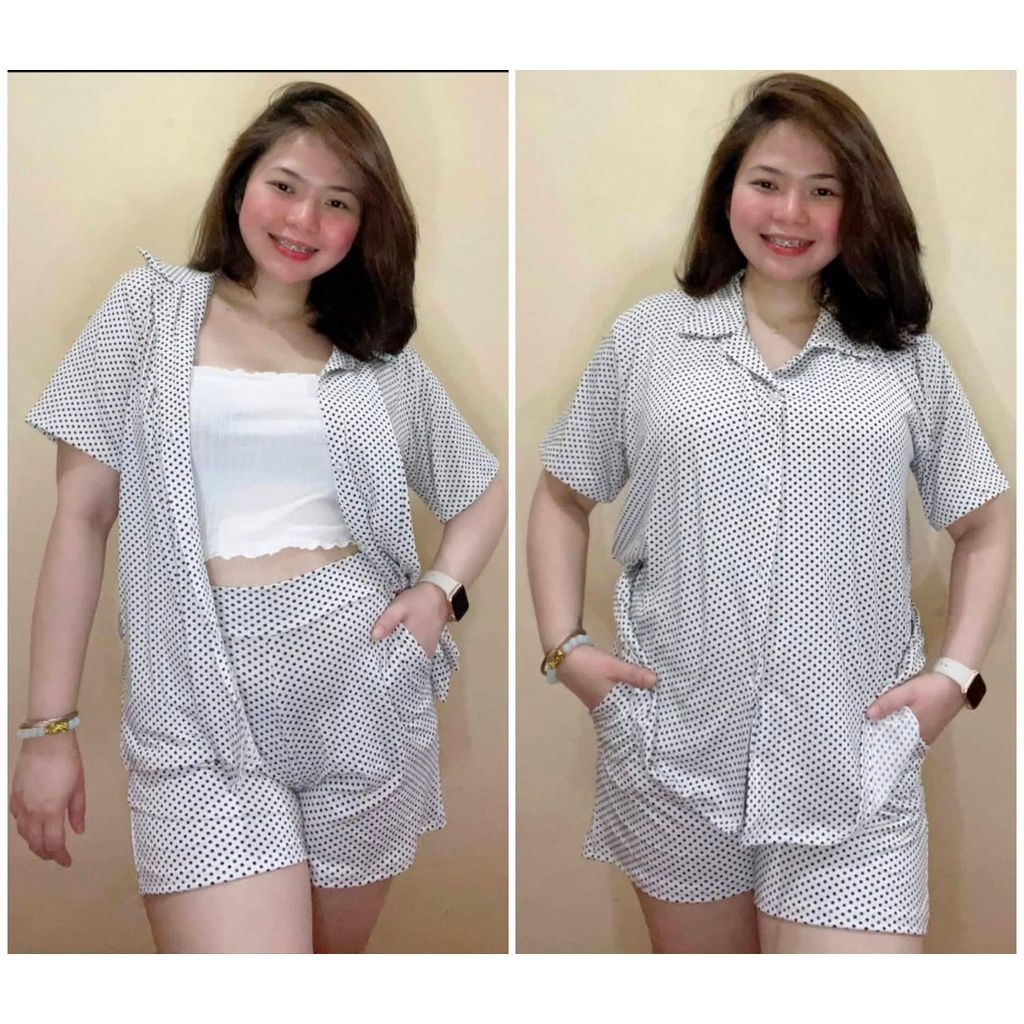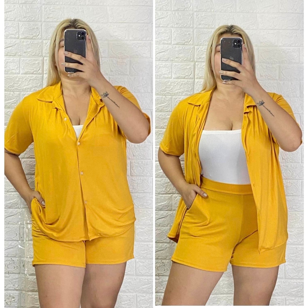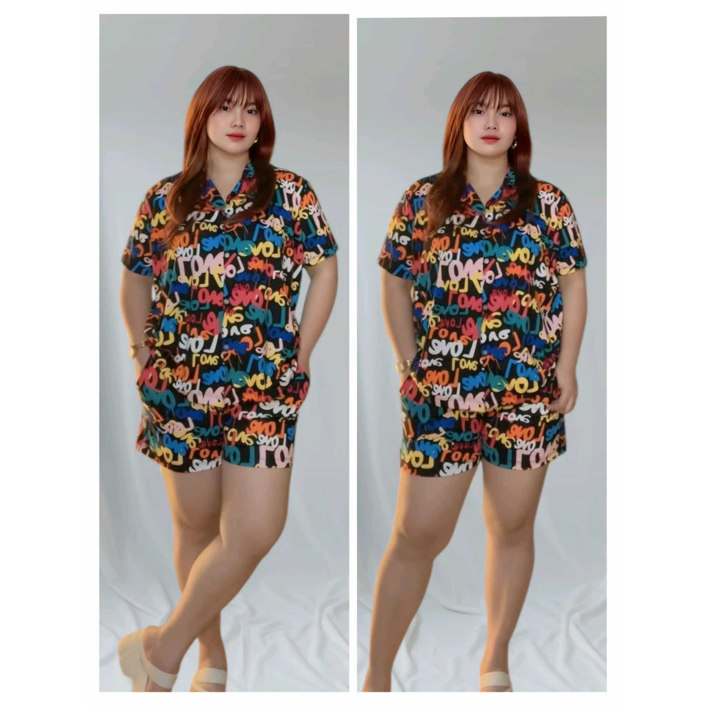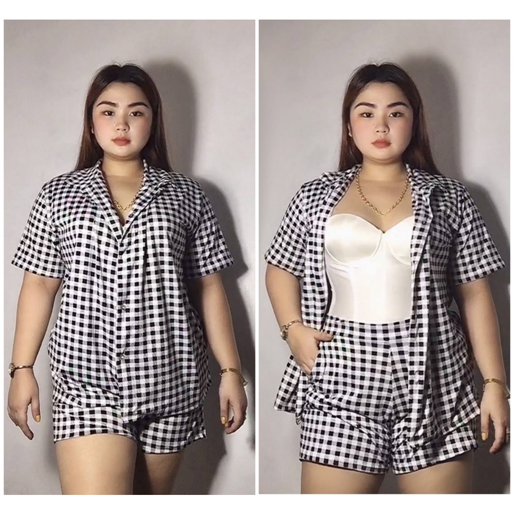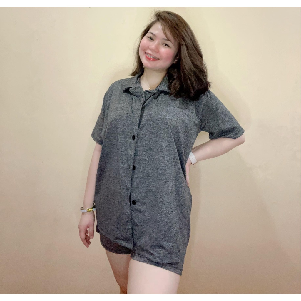 Bsapp : Women Polo Terno Sleepwear Plus Size w/ 2pocket Short (Kasya XL-4XL size) Button Collar