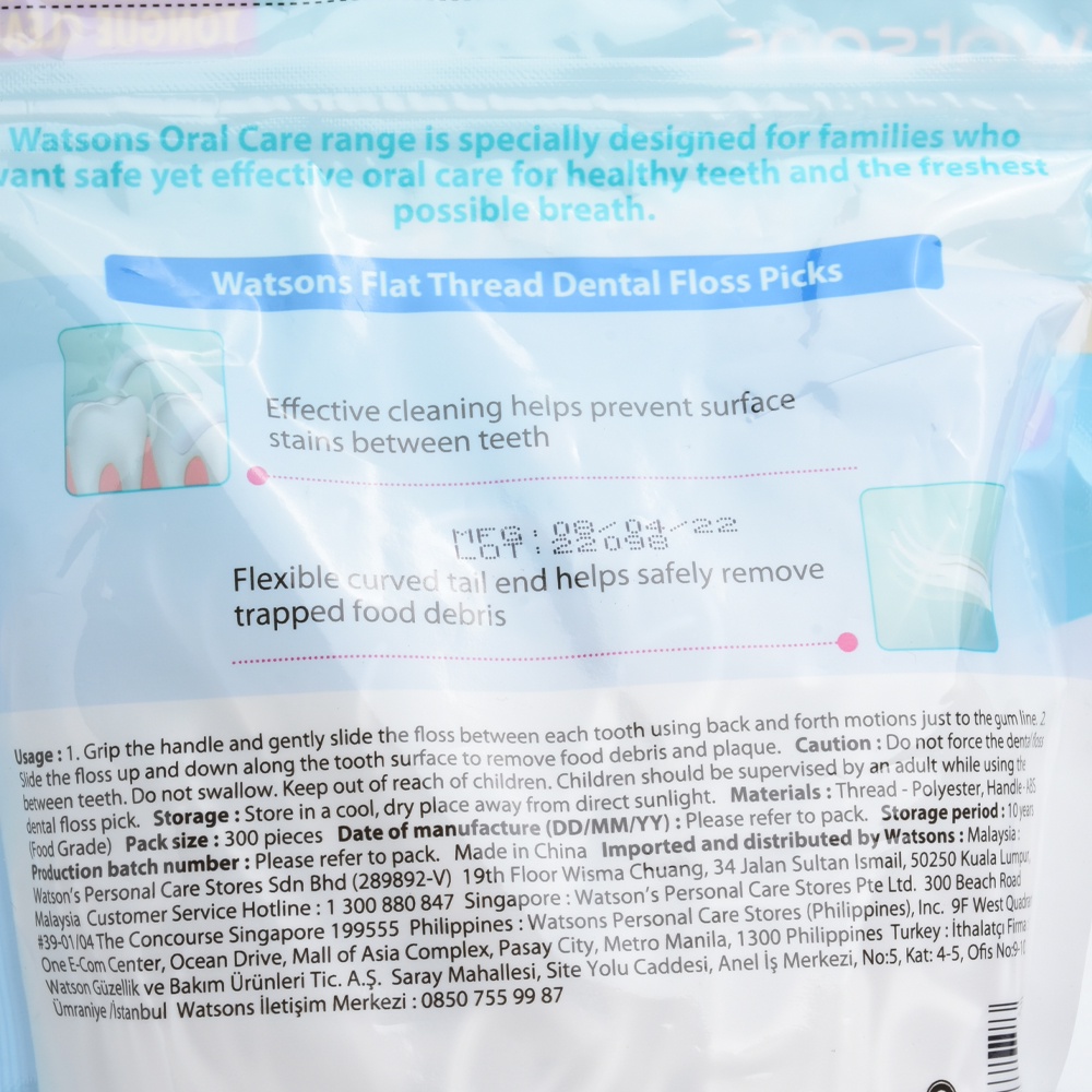 WATSONS Love My Smile Dental Floss Picks Flat Thread 300s