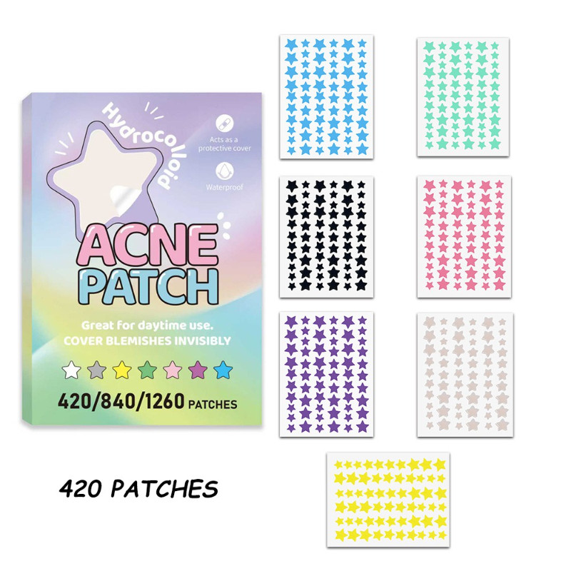 420/840PCS Cute Star Acne Patch Mix Shapes Hydrocolloid Pimple Stickers