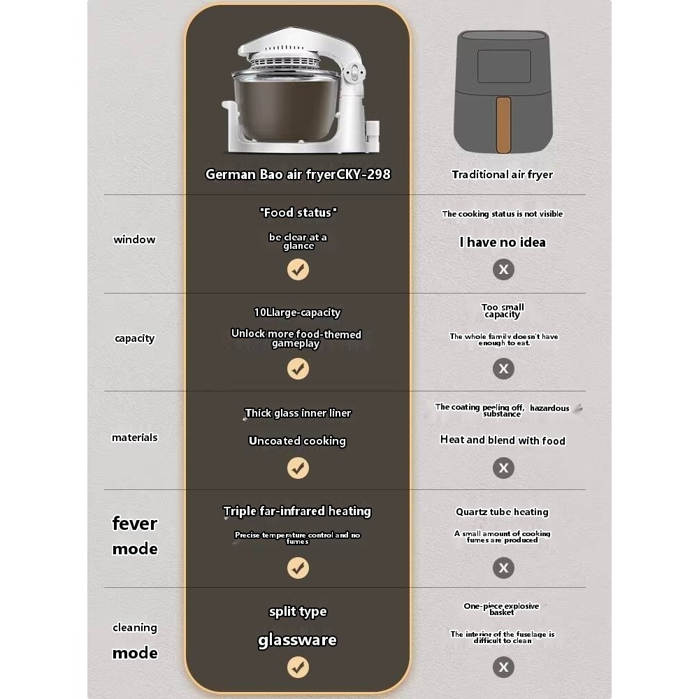 ☑♥ German Baohao Glass Air Fryer Household Oil-Free Electric Fryer Multi-Functional Light Wave Oven