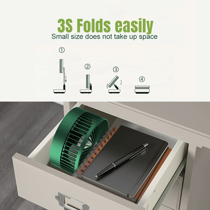 Desk Electric Fan Small folding fan with USB charging retractable 3-speed portable Mini fan