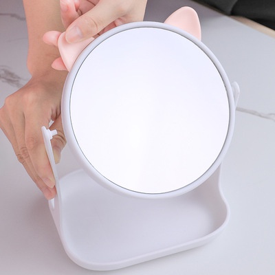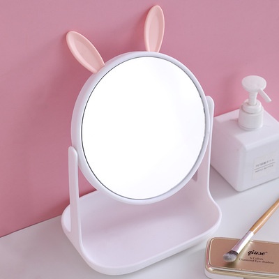 Desk Mirror Makeup Mirror Cat Ears Rabbit Ears Round Mirror Desktop Rotating Makeup Mirror No Rating