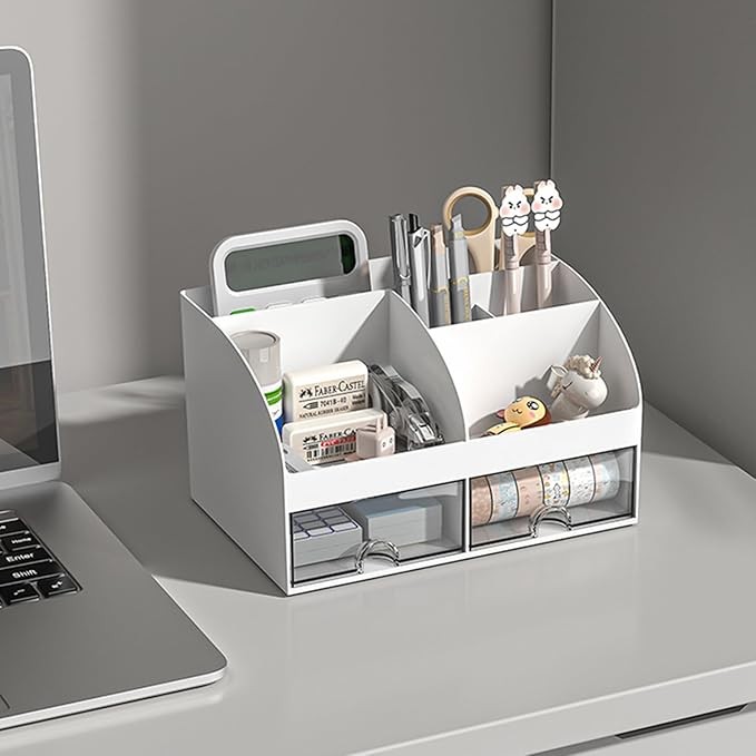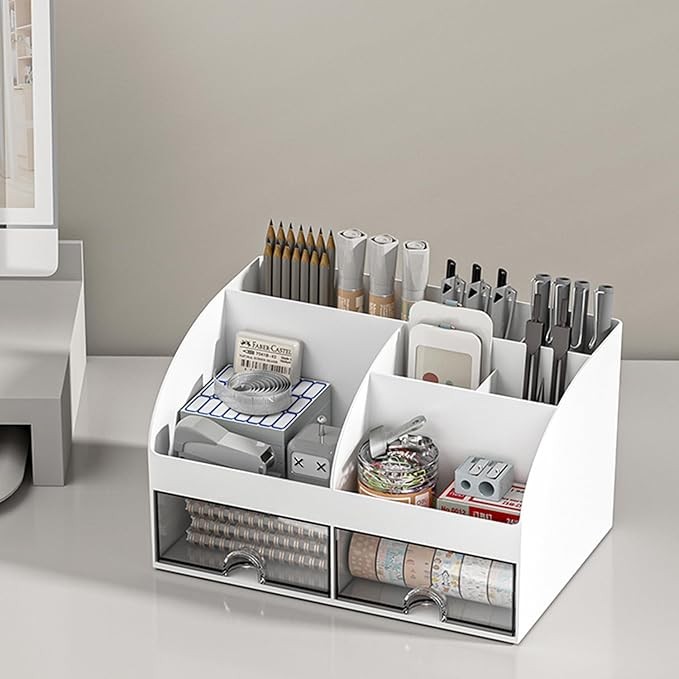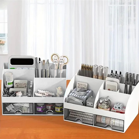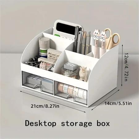 Desk Organizer With Drawer Pen Holder Office School Supplies Stationery Storage Box