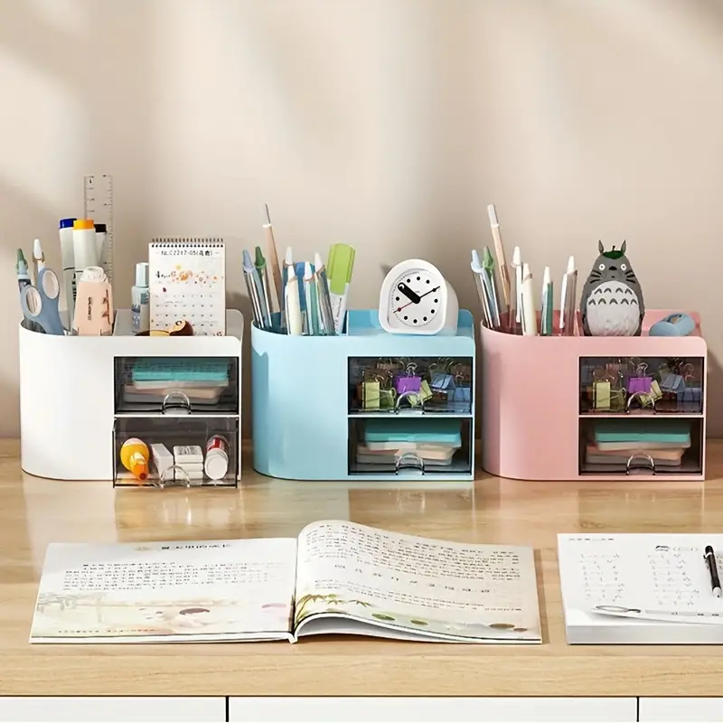 Desk Pen Organizer Holder Office School Supplies Student Pencil Cases Makeup Brush Organizer Drawers
