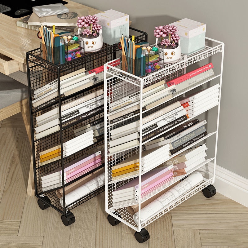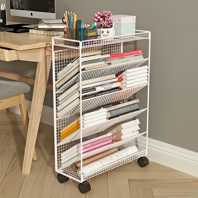 Desk Side Small Bookshelf Desk Side Storage Rack Movable Wheeled Classroom Gap Book Storage Primary School Student Bookshelf