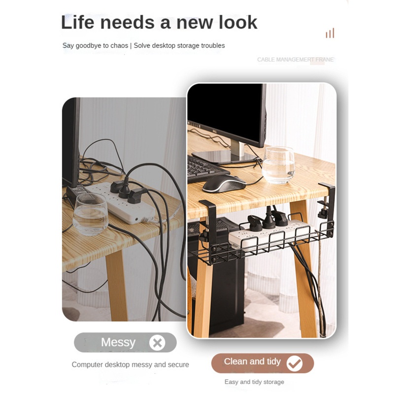 Desk Wire Organizer Under Table Storage Rack for Home Office Cable Rack Shelf Table Bottom Holder
