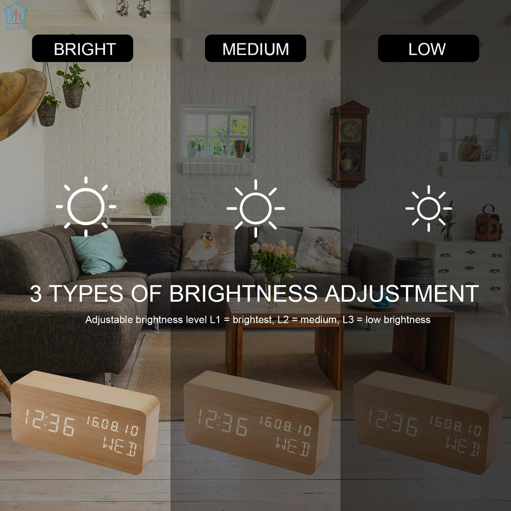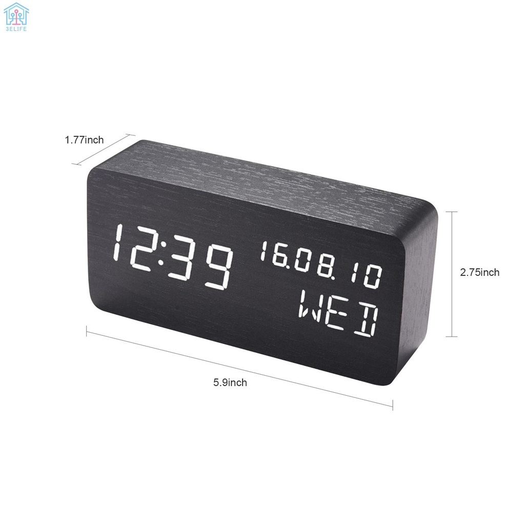 Desk Wooden Alarm Clock with Voice Control Date Temperature Adjustable 3 Brightness Display LED Digital Alarm Clocks for Bedroom Bedside