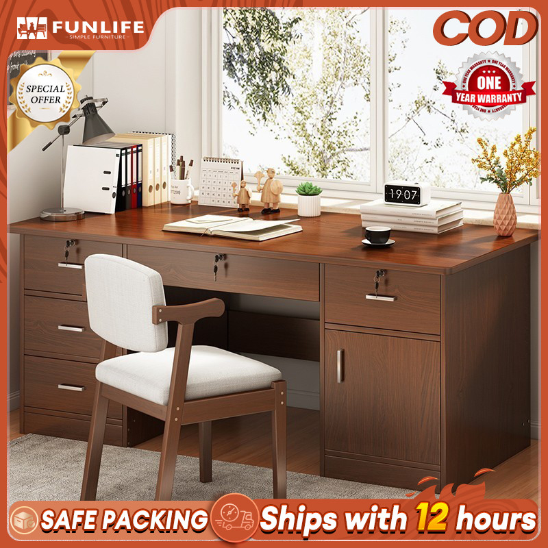 【Thickened】Office Desk With Lock Home Computer Table Desktop Work Table With Drawers Desk Staff Desk