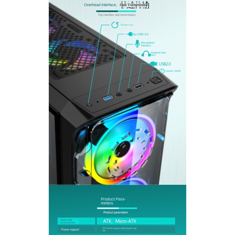 Desktop Computer Case Influencer Game Gaming Water-Cooled Main Box Side Transparent Tempered Glass Chassis