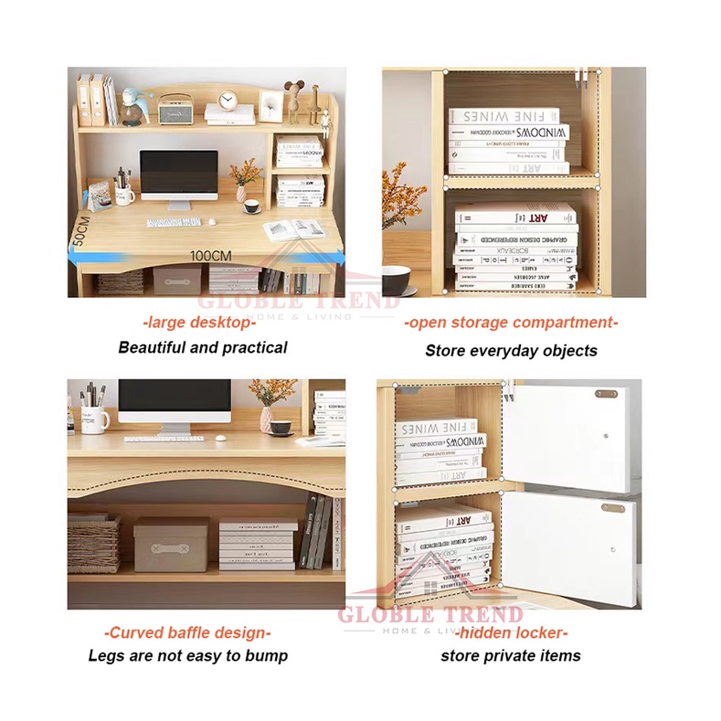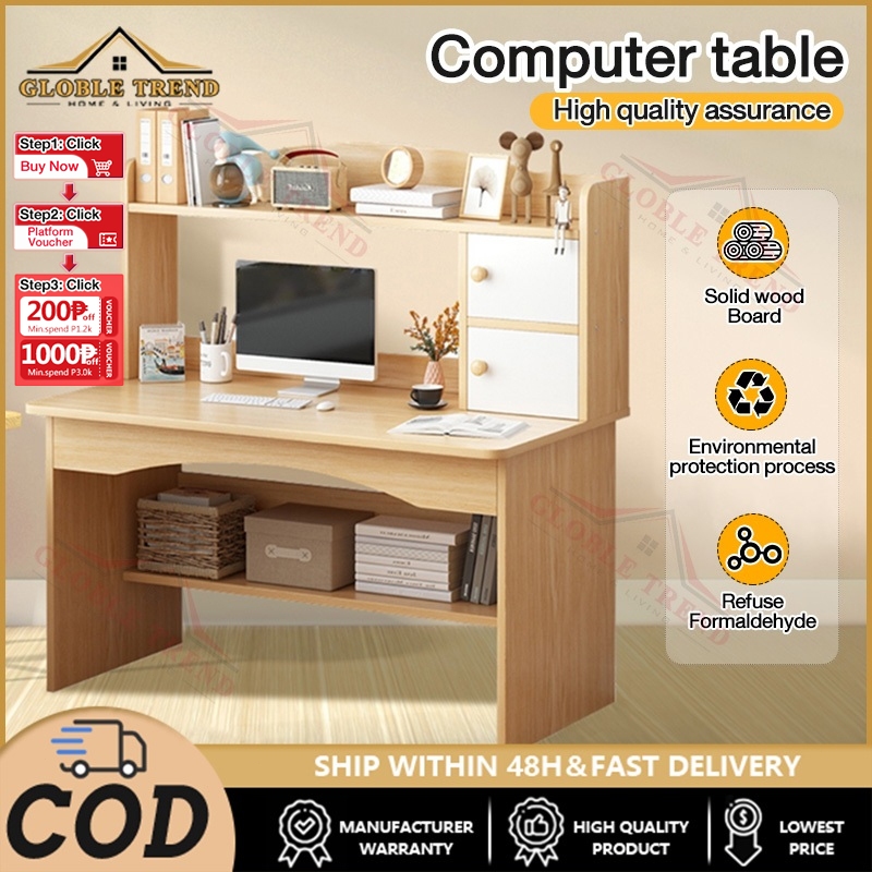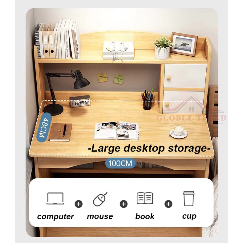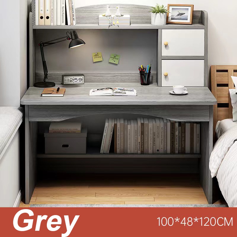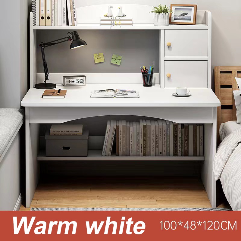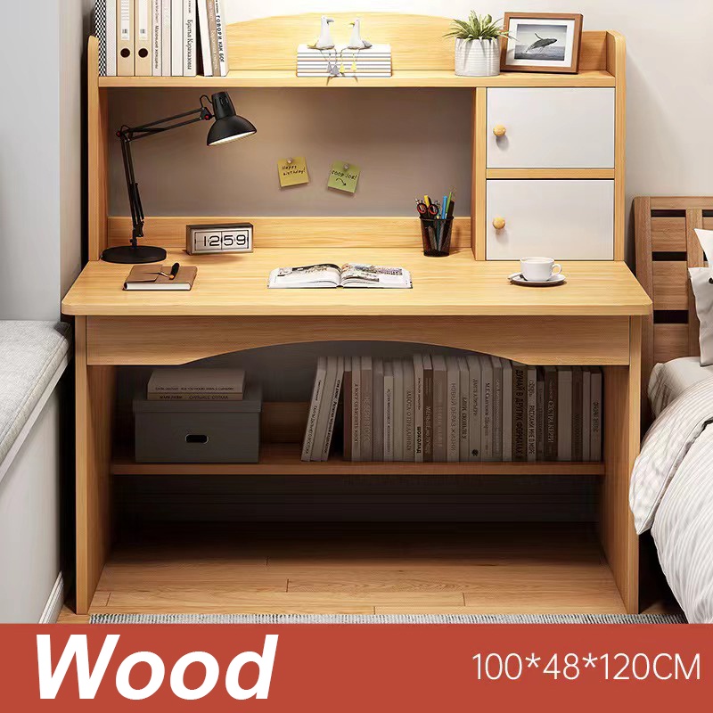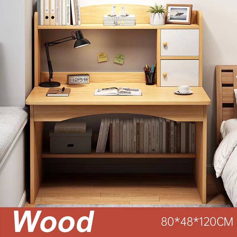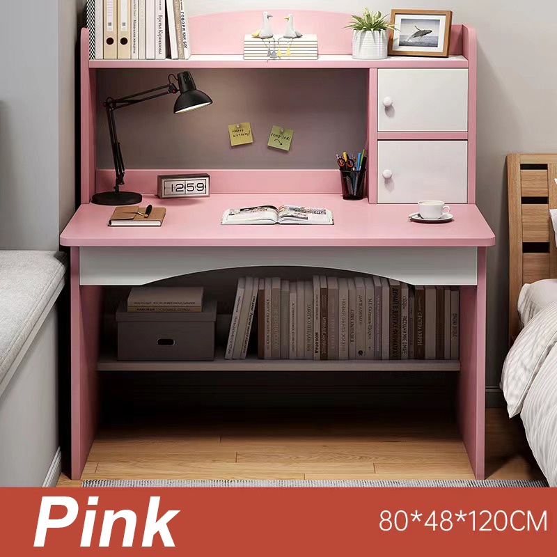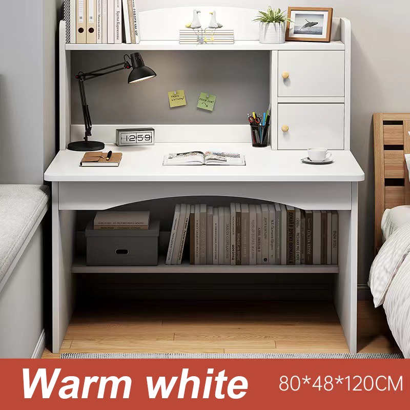 Desktop Computer Desk Student Table Home Study Desk with Drawer Bookshelf Integrated Table