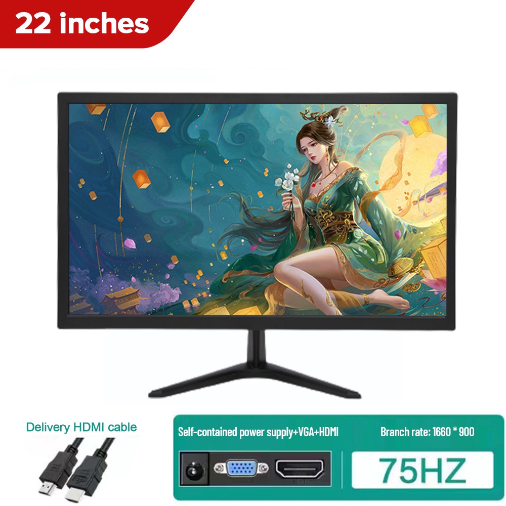 Desktop Computer Monitor PC Gaming Office Monitor 24 Inch HD 1080p 75Hz with HDMI VGA Monitor