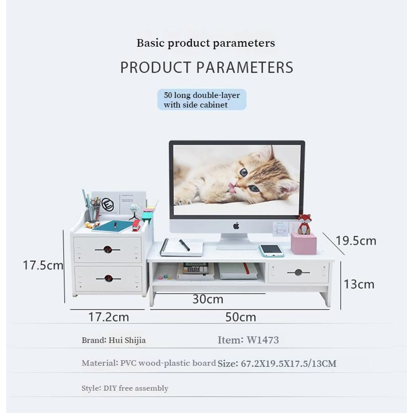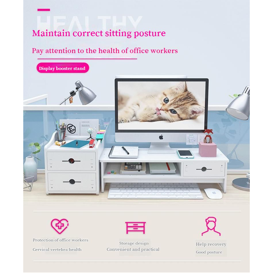 Desktop Computer Monitor Stand Raiser Multifunction Storage Shelf 2 Drawer PC Computer Laptop Holder