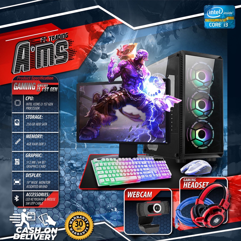 Desktop Intel core i3 1st gen 250gb HDD 4gb ram ddr3 512 64bit videocard 19wide monitor