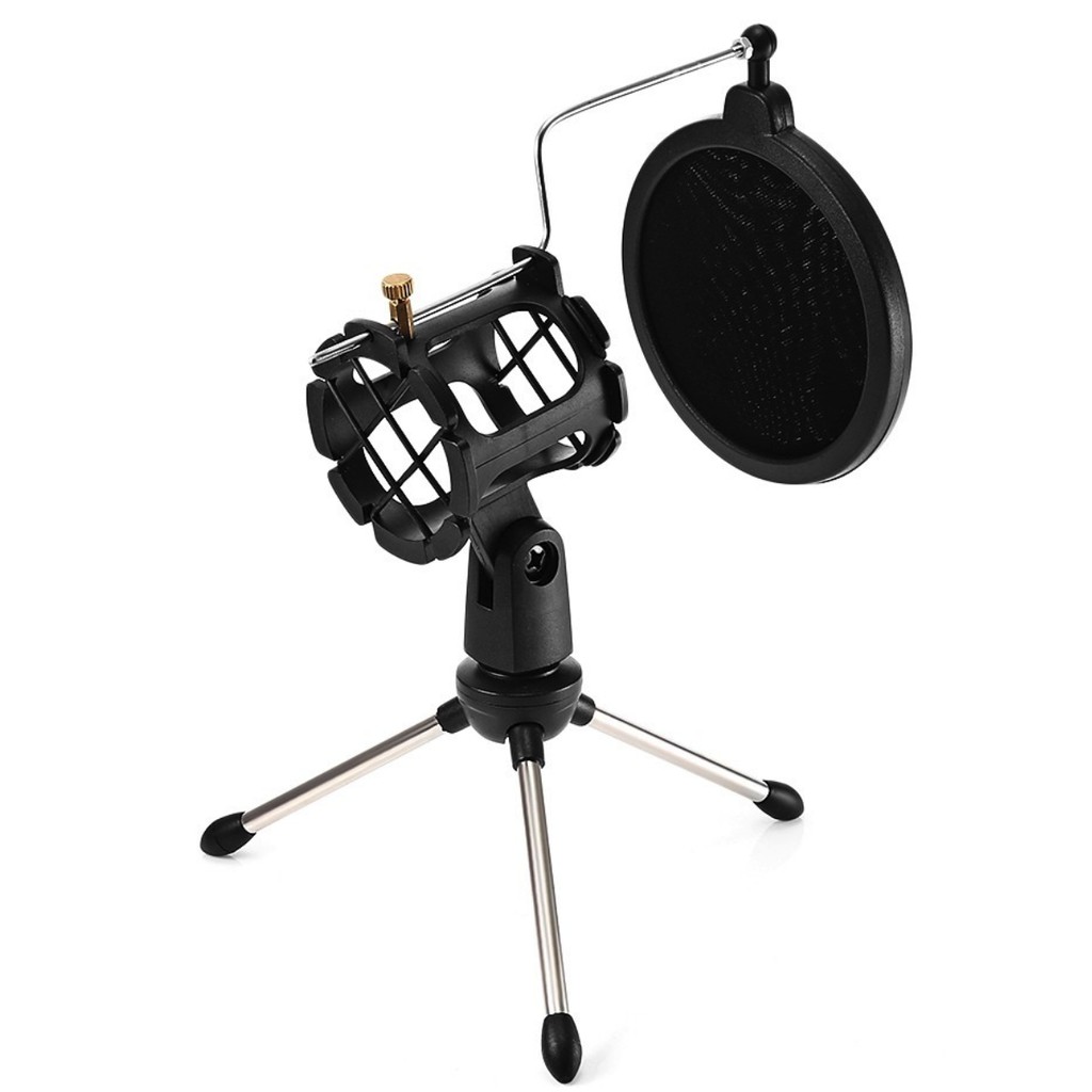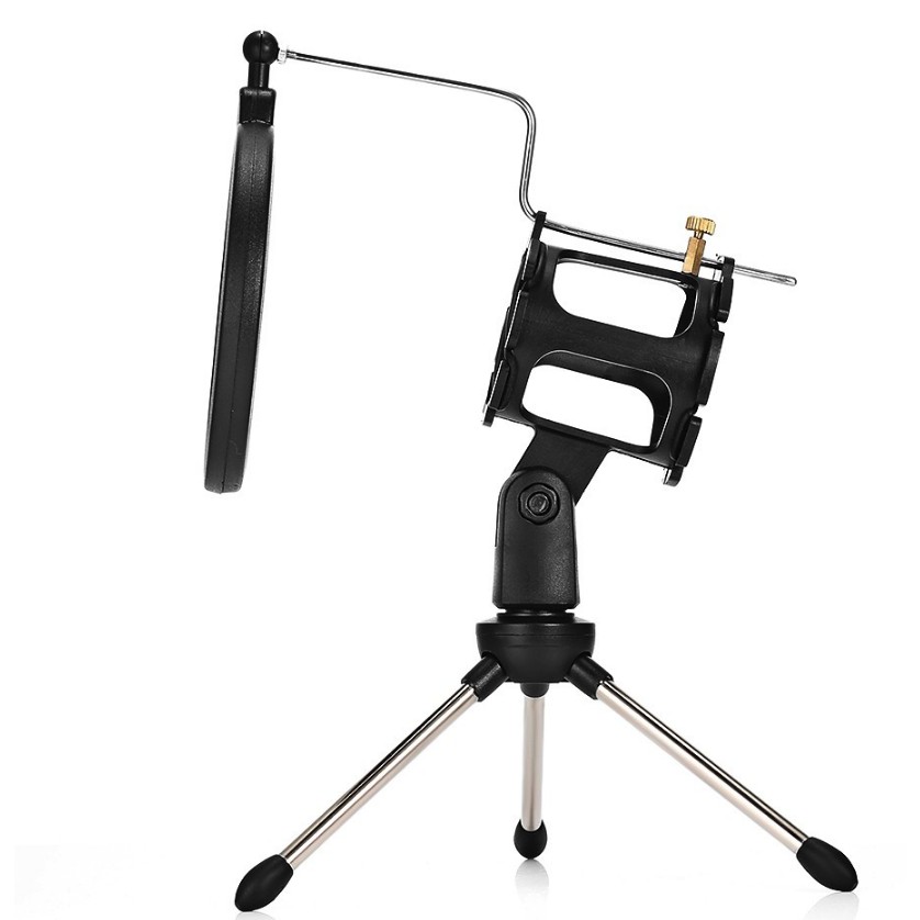 Desktop Microphone Tripod Stand with Pop Shield Dual Filter