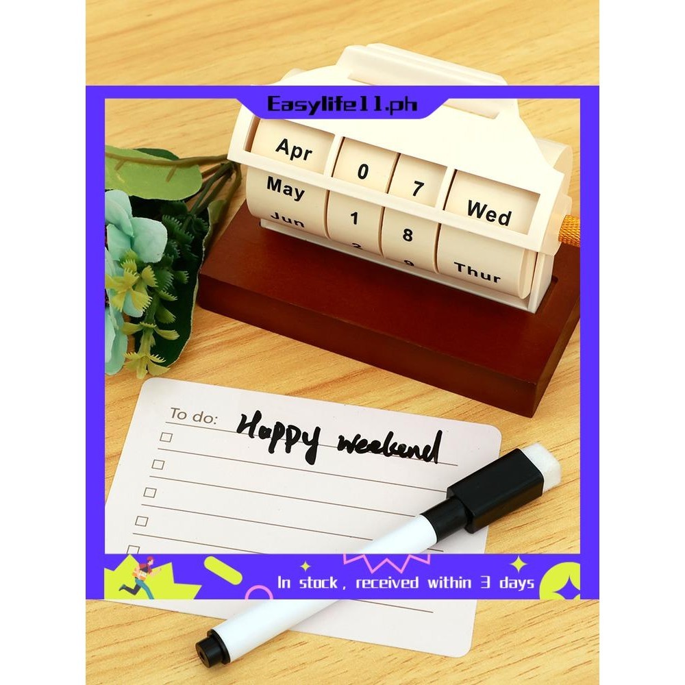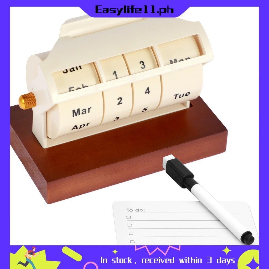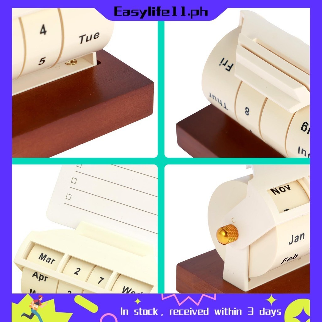 Desktop Rotary Perpetual Calendar Wooden Wheeling Calendar with Reusable Reminder List Month Week Date Display for Desk Home Office SHOPTKC4937