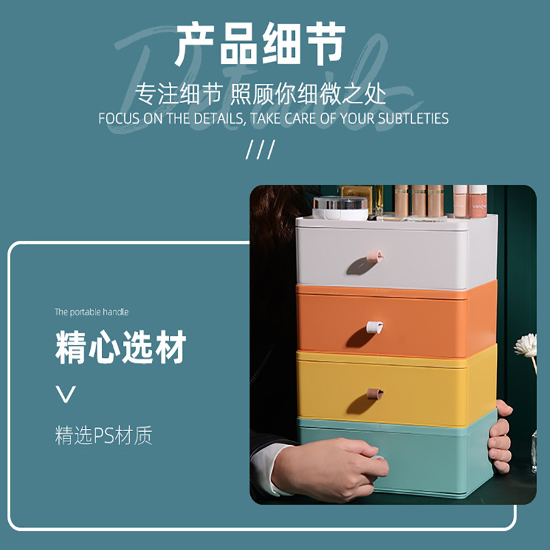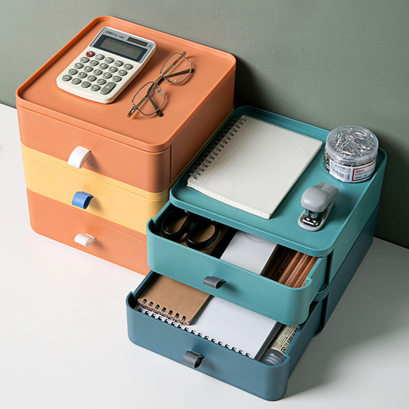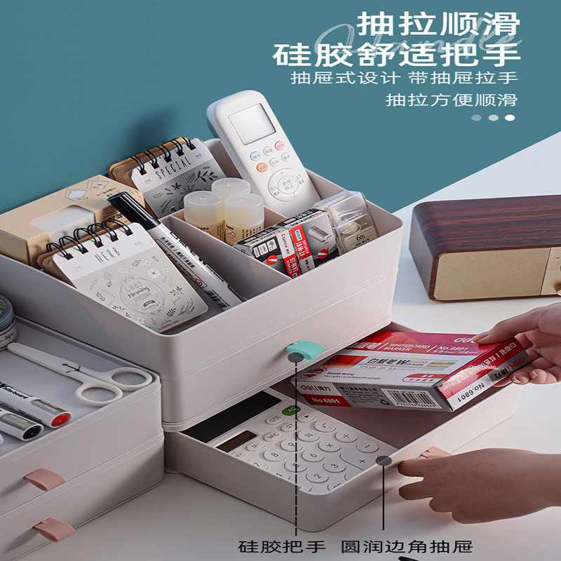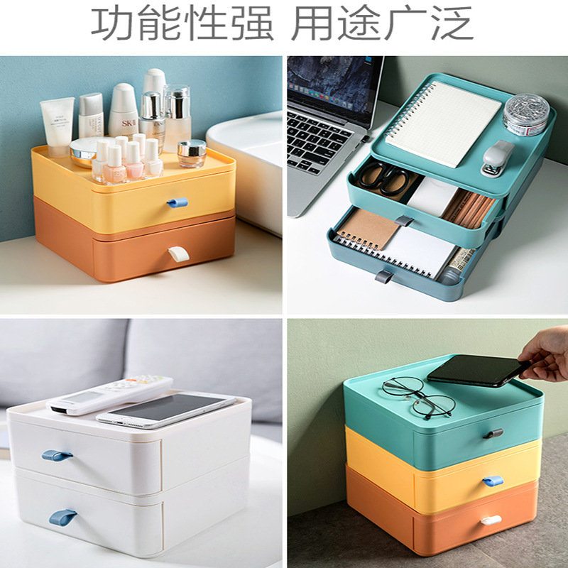 Desktop Storage Box Drawer With Handle Stackable Layered Rack Compartment Cosmetic Stationery Organizing