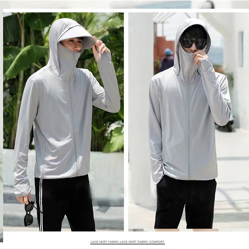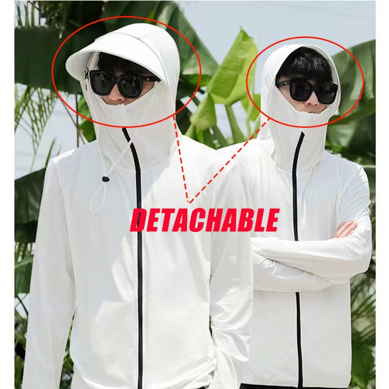 Detachable Hat UV Sun Protection Jacket Long Sleeve Anti Ultraviolet Hooded SportswearJacket UV Protection Jackets Outdoor UV Jackets Men Hooded UPF50+ Ice Silk Summer Coat