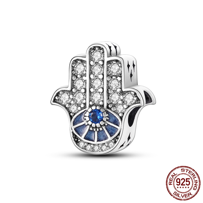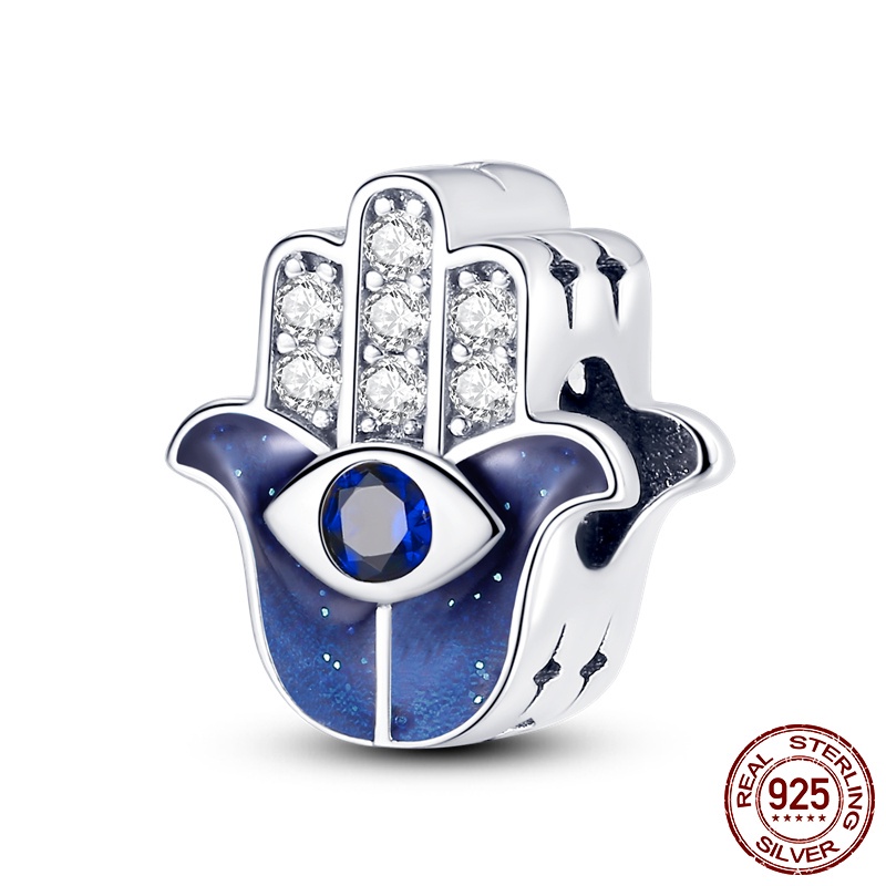 Devil Eye Palm Charm Beads 925 Silver Fatima Hand Charm Beads Bracelet Gold letter stopper Fit Original Devil Palm Silver Hand Bracelet DIY Women's Jewelry