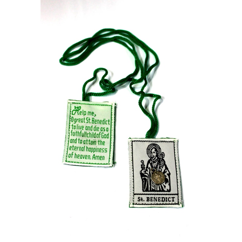 Devotional Scapular - Saint Benedict (Green) with Saint Benedict Medal