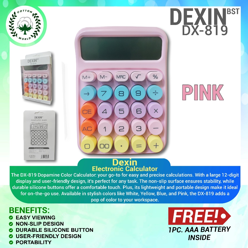 Dexin Mechanical Keyboard Calculator 12 Digits Large Display (Battery Included)