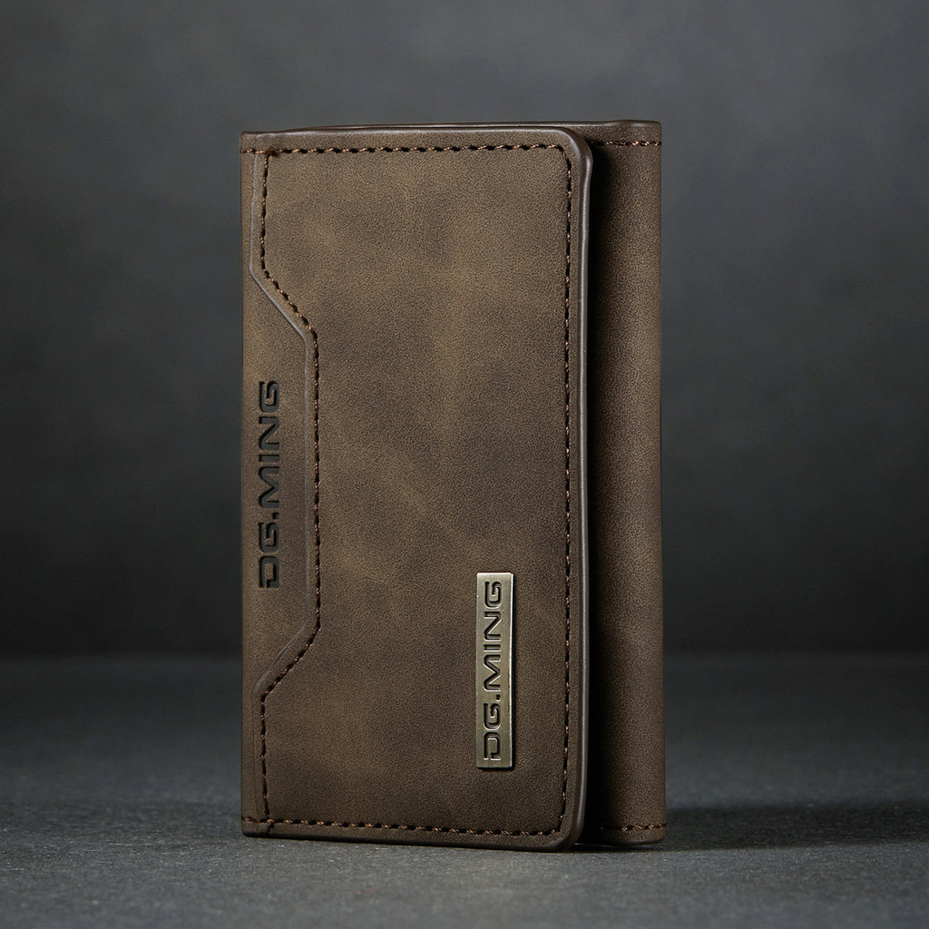Dg.ming Brown 70% off Card Holder Card Holder High-End Retro PU Card Holder Leather Case Multifunctional Magnetic Small Card Holder
