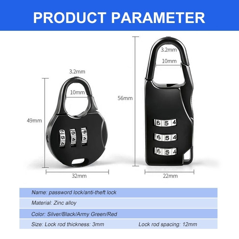 Dial Digits Code Number Password Combination Padlock Luggage Lock Safety Backpack Padlock