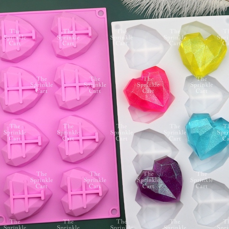 Diamond Love Heart shape Silicone Molder Geometric Heart Cake Pop Chocolate Molder Dropper Mallet