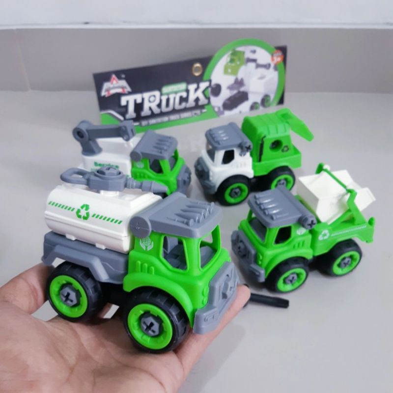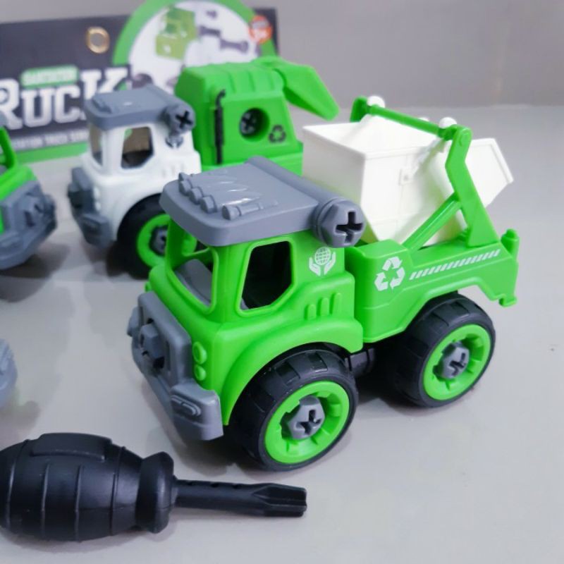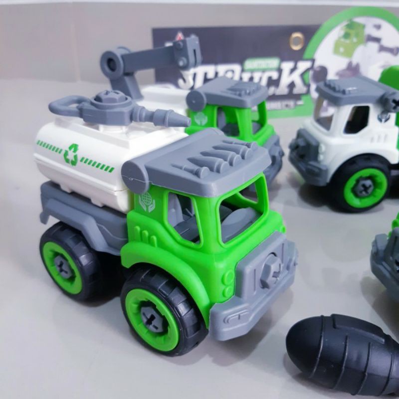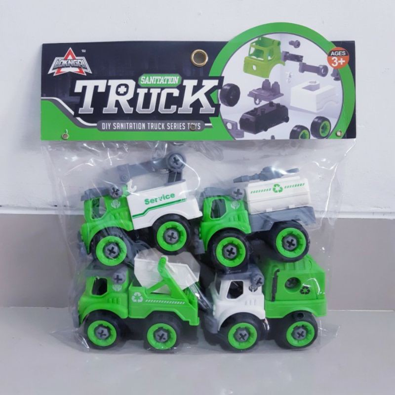 Diecast Truck Cars Vehicles DIY Miniature Garbage Trucks Toys Set