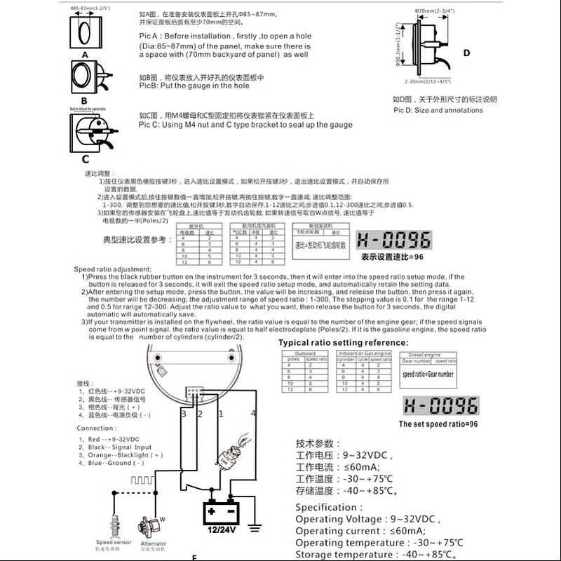 Diesel Tachometer W Signal Excavator Agricultural Vehicle Loader Engine Speed Sensor 1-300 Teeth Adj