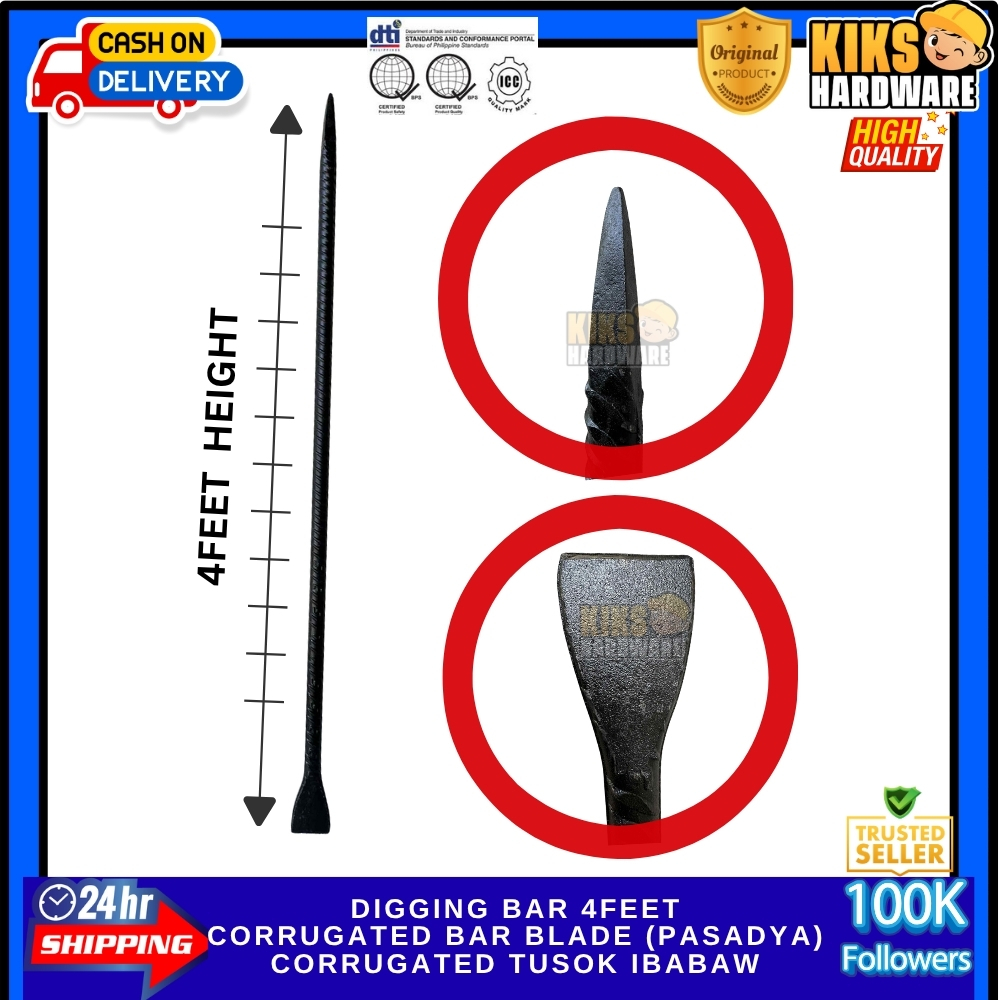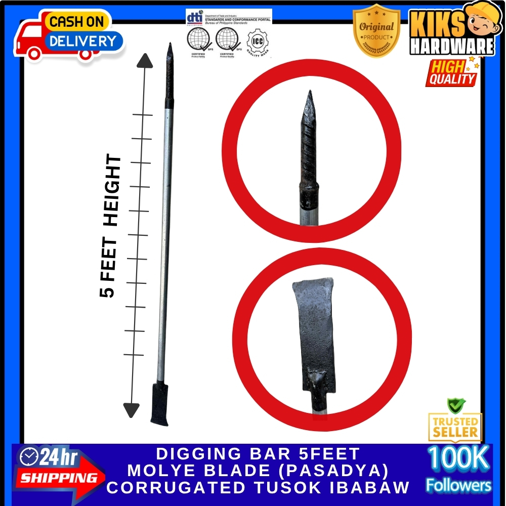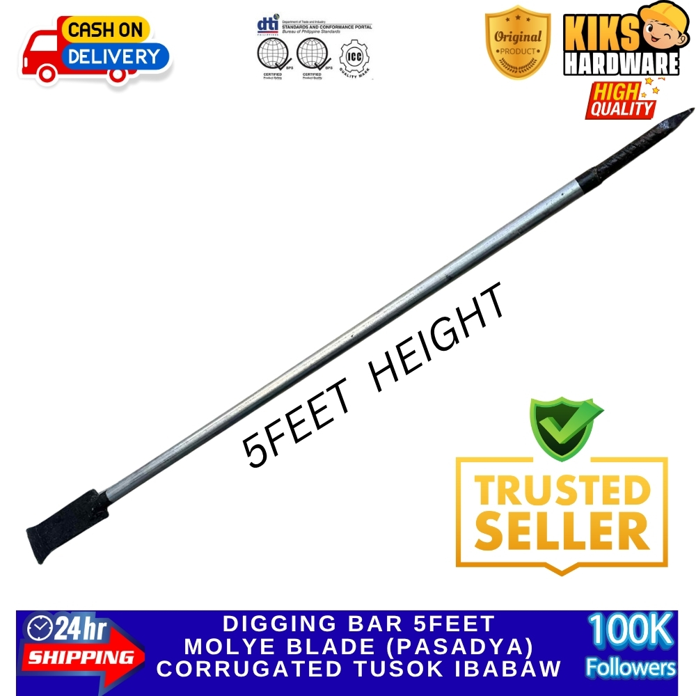 Digging Bar Deformed Type Straight Metal Bar Hole Digger 4feet Corrugated Bar Body & 4feet Pipe Body