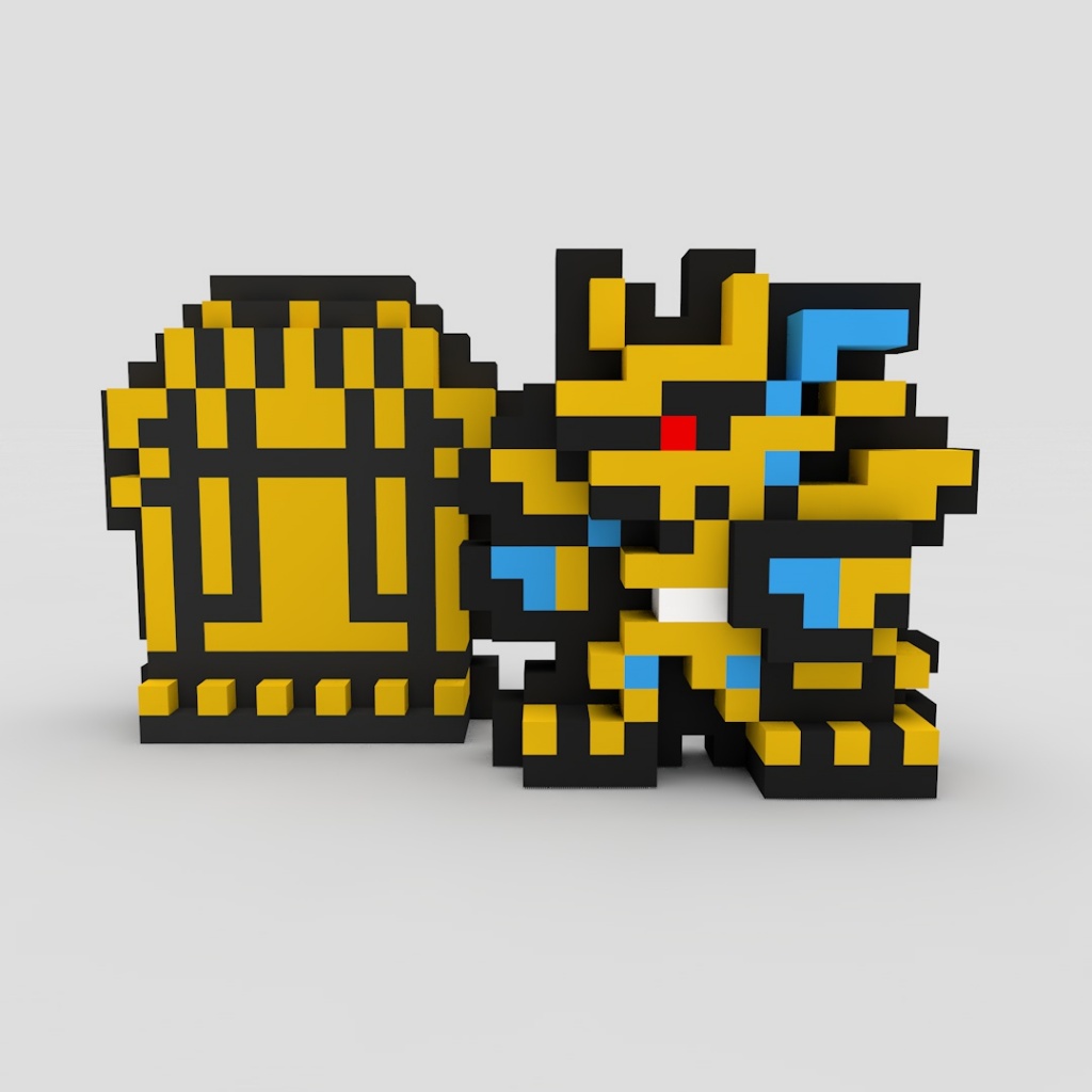 Digimon Digivice Vpet Veemon and Wormmon Version Pixel Art Colour Figure Keychain