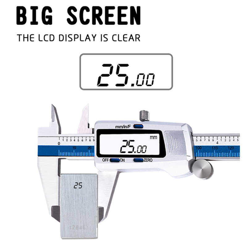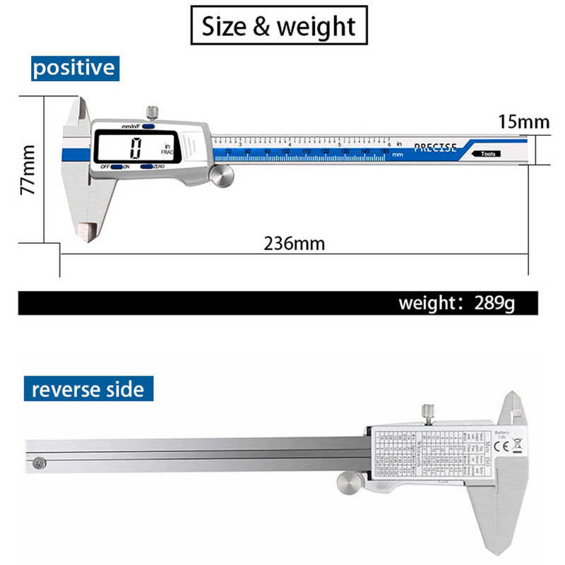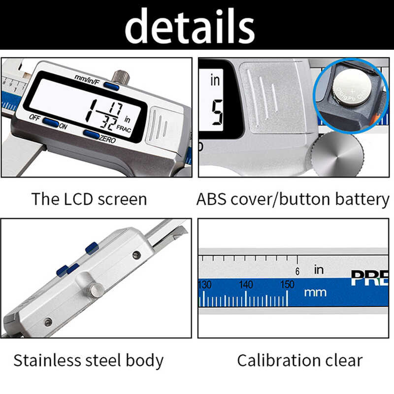 Digital 6 Stainless Steel Measuring Tool Electronic Micrometer Caliper 3 Measure Units Switchable