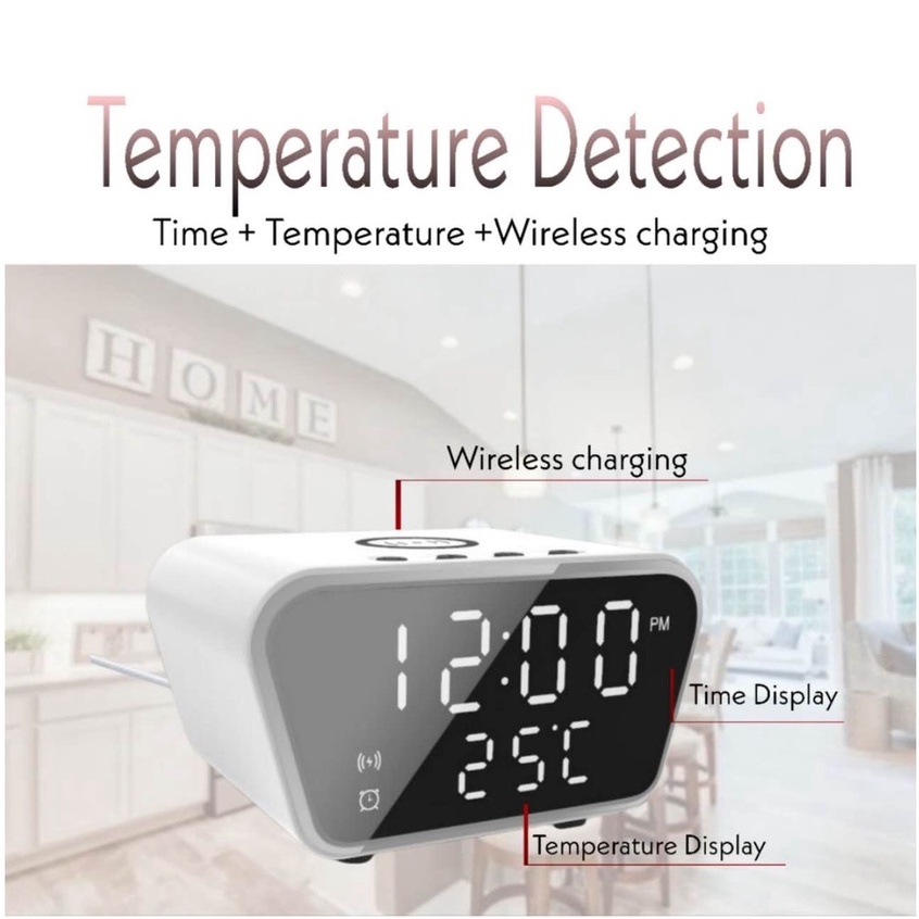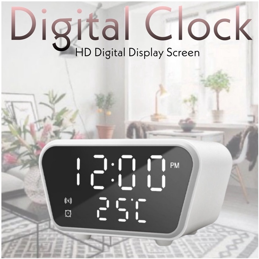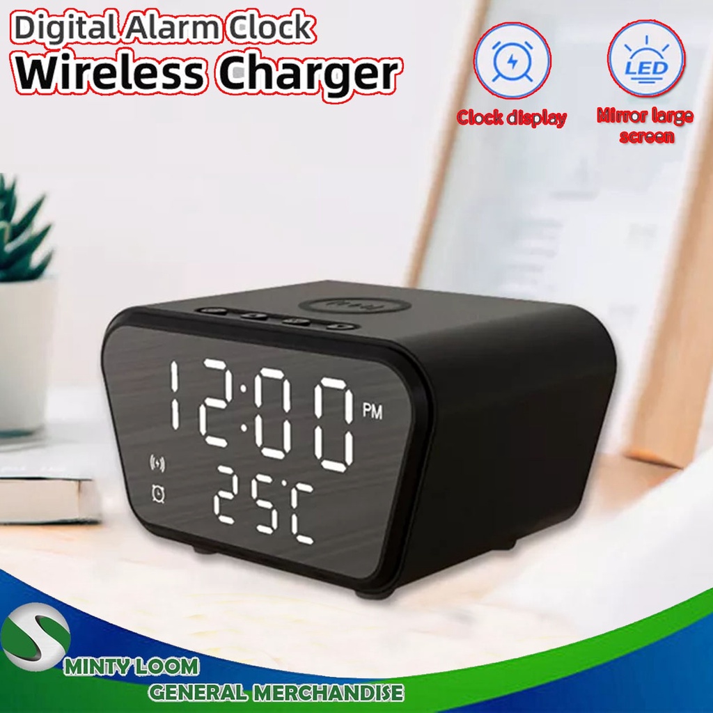 Digital Alarm Clock Wireless Charger 2 in 1 for Phone with Alarm Time Temperature Qi Wireless Charge