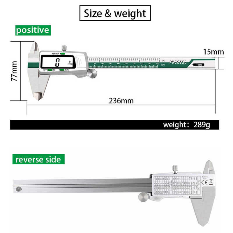 Digital Caliper Digital Calibrator Inch/Metric Stainless Steel Vernier Caliper Digital Micrometer E