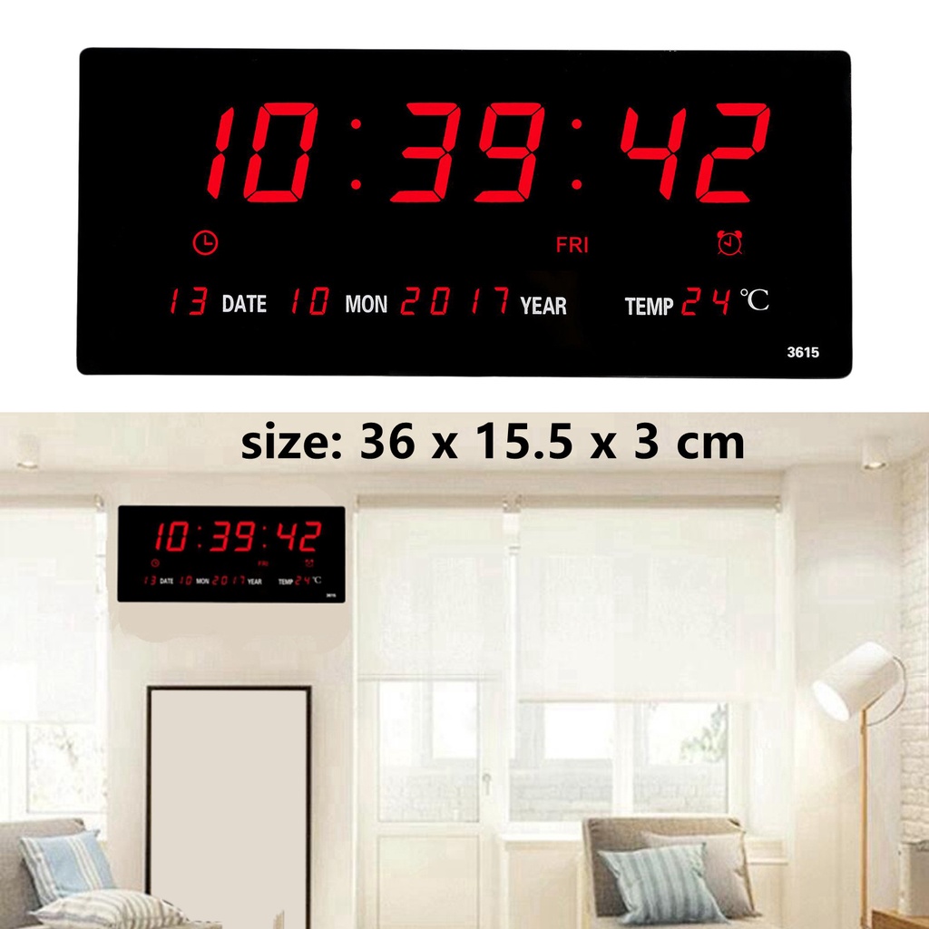Digital Clock, Large LED Digital Wall Clock, 12/ Digital Alarm Clock with Day and Date,Indoor Temperature,Snooze for Home,Office