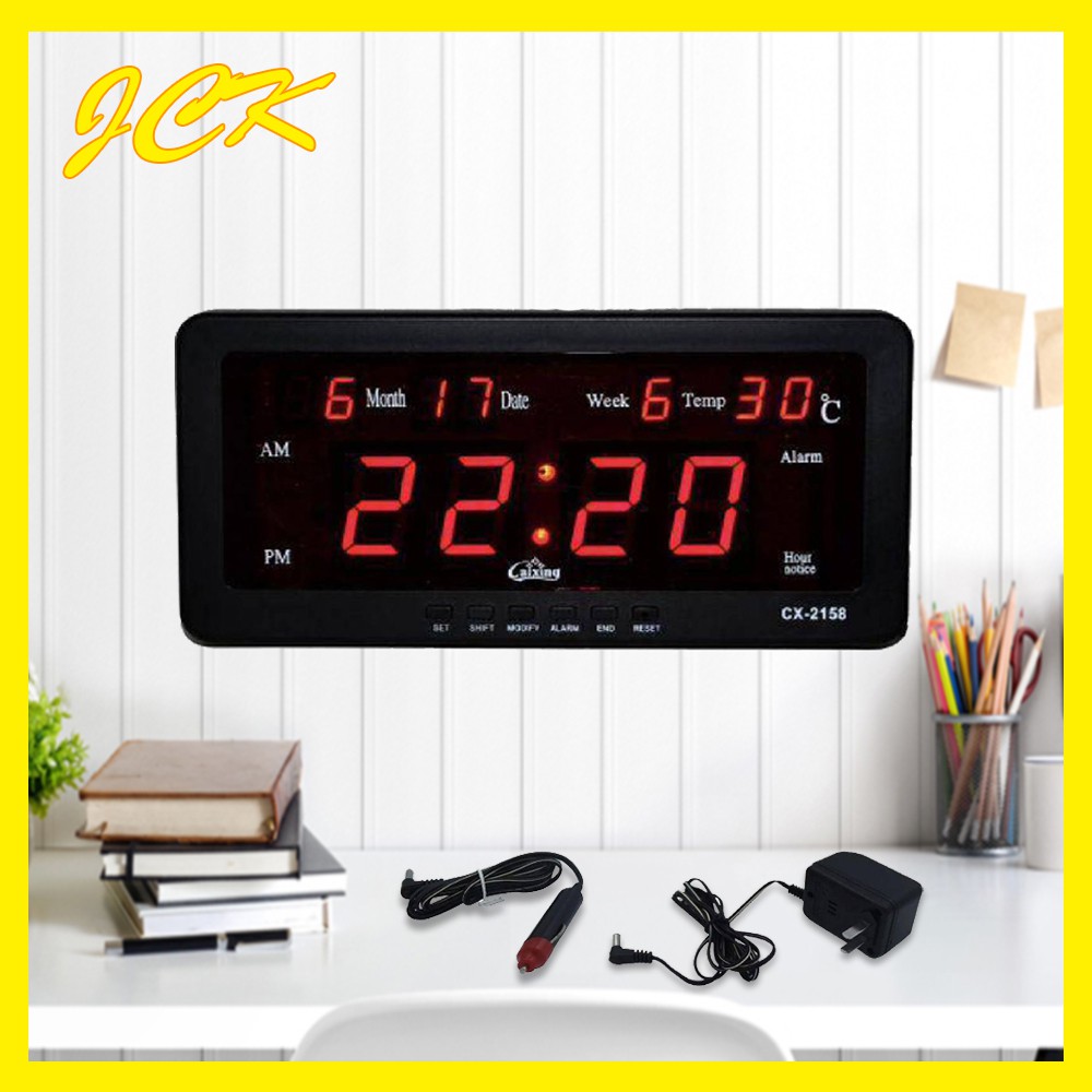 Digital Clock Led Screen Model CX-2158 Table Wall Car With Tea Cable And Adapter There Is A Plug On The Car.