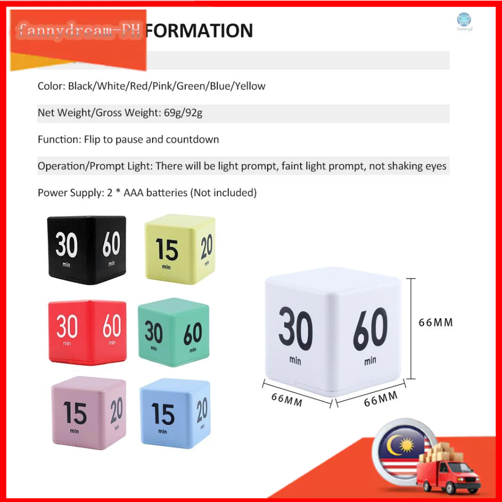 Gravity Sensor Cube Timer 15-20-30-60mins Flip Digital Timer for Kitchen, Kids Study, Exercise & Cooking