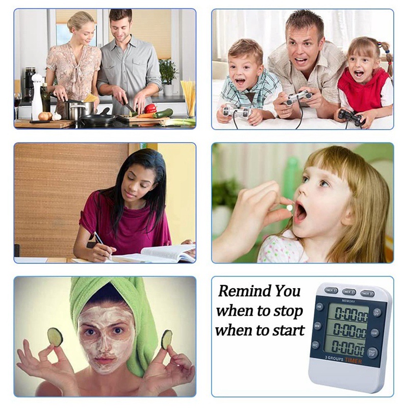 Digital Dual Kitchen Timer, 3 Channels Count UP/Down Timer, Triple Cooking Timer, Large Display, Loud Volume Alarm
