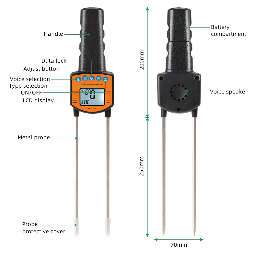 Digital Grain Moisture Meter 0.1% High Precision Corn Rice Coffee Seed Temperature Humidity Moisture Content Tester
