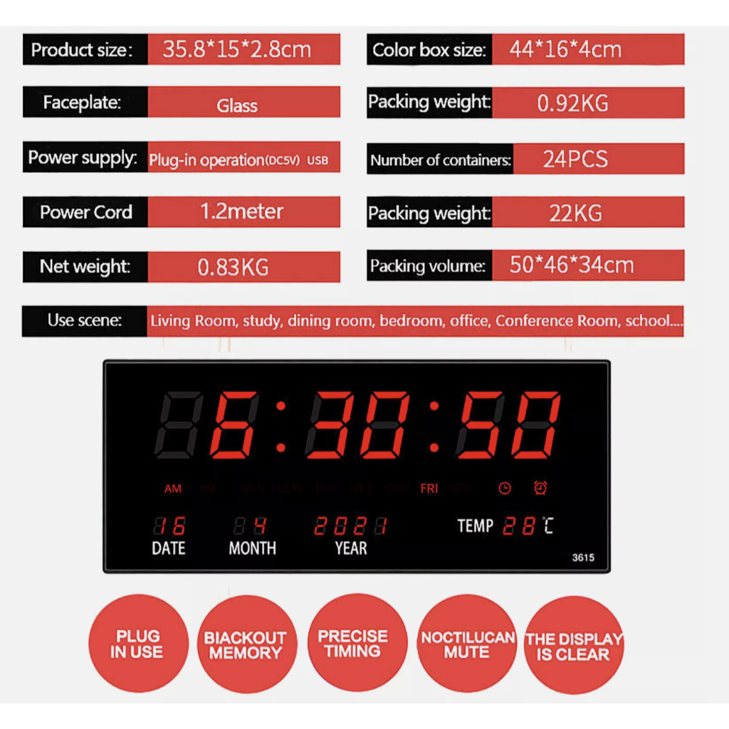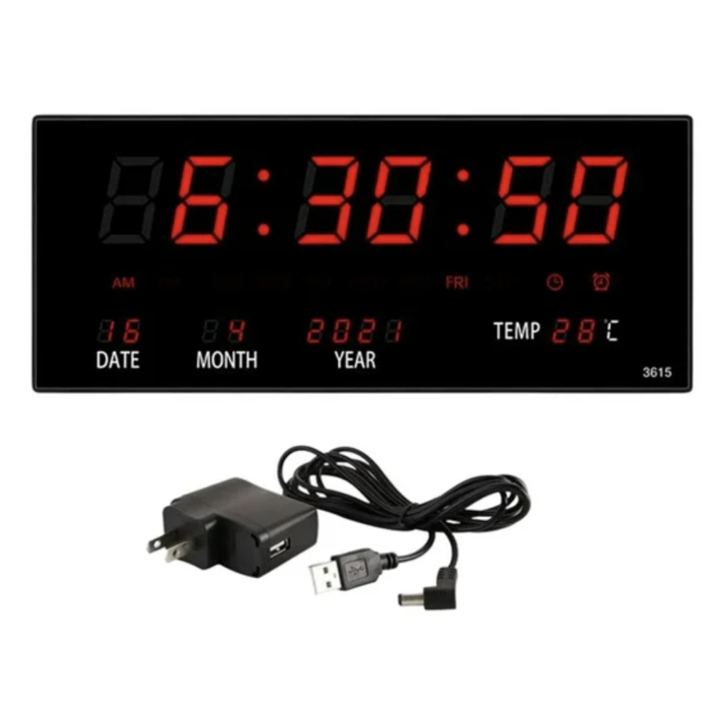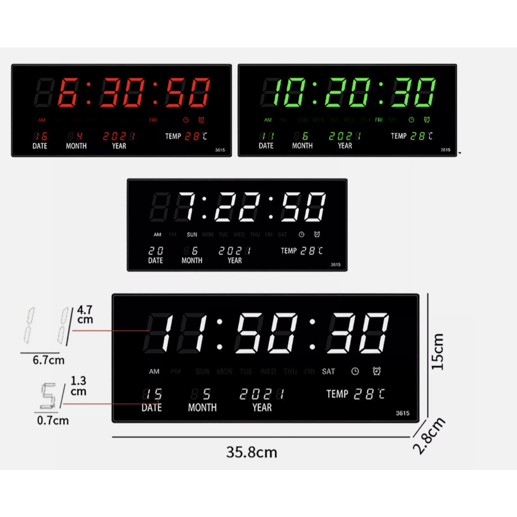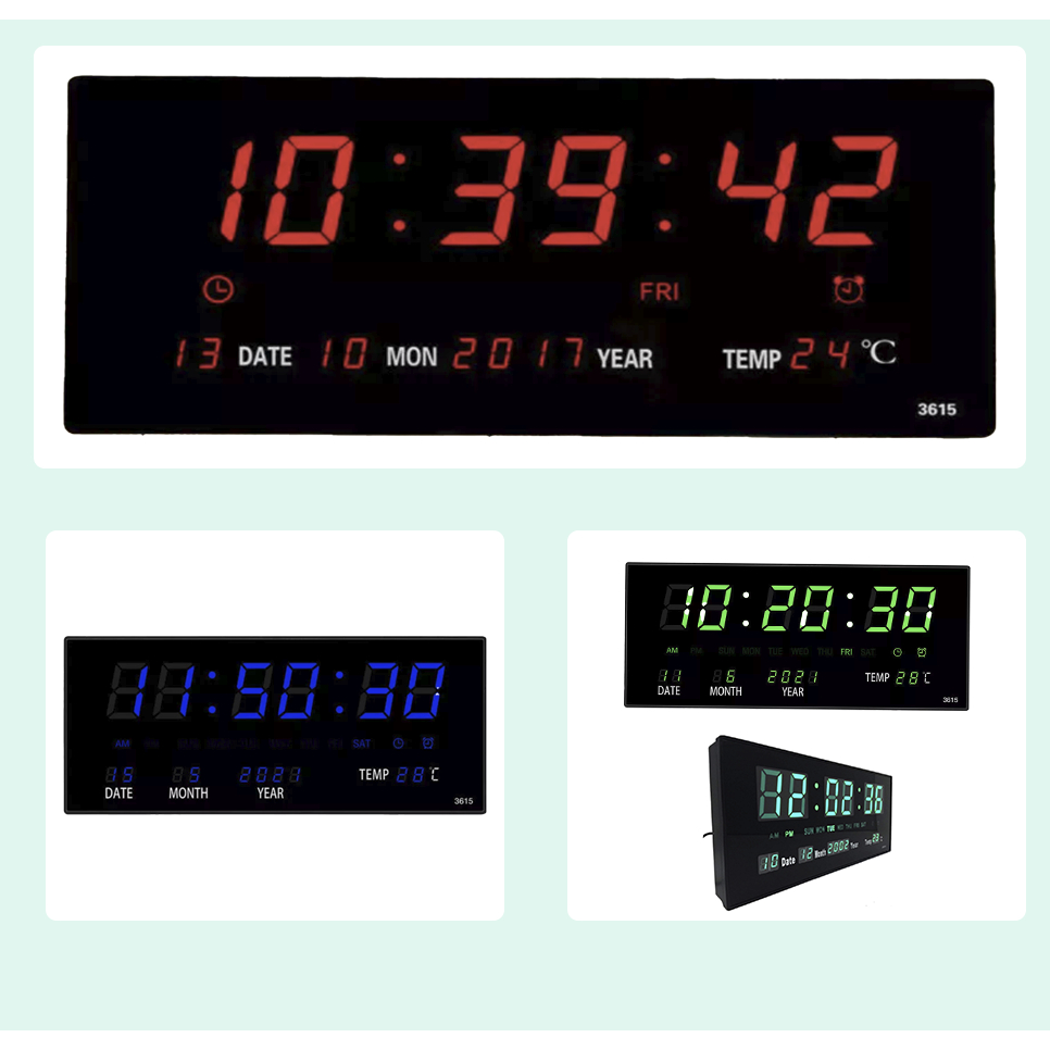 Digital JH-3615 Large Display LED Wall Clock with Date Wall Mounted-3COLOR DIGITAL NUMBER