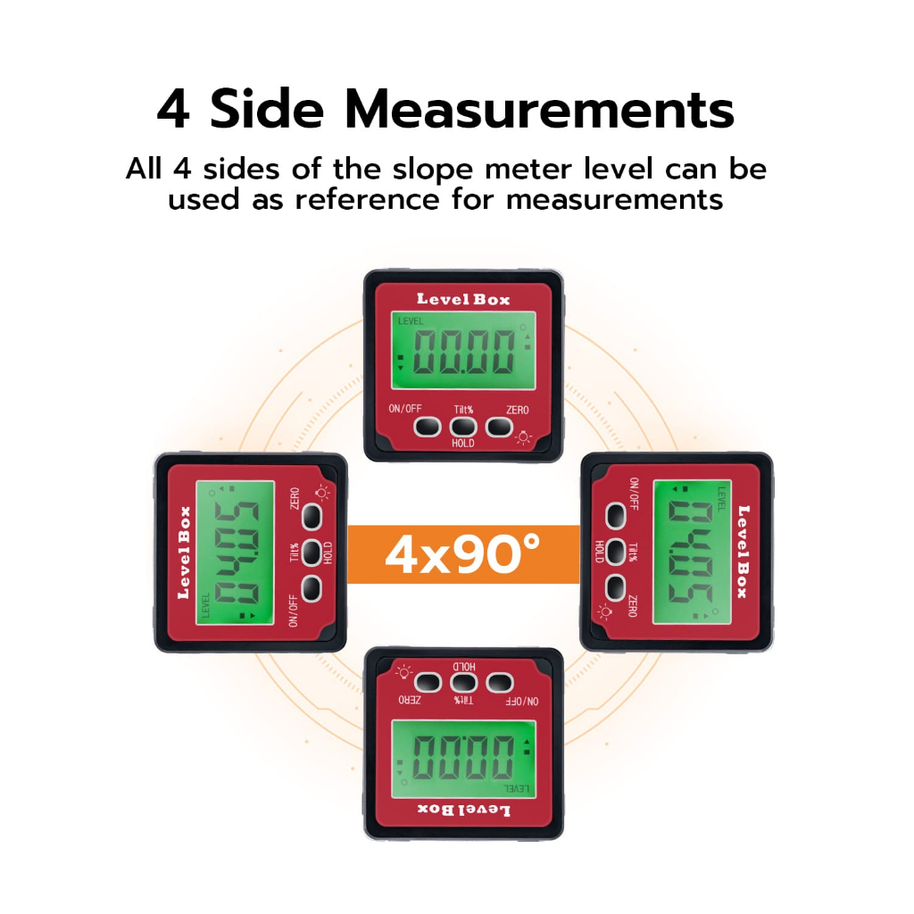 Digital LCD Protractor with Magnetic Base, IP54 Waterproof Inclinometer Bevel Box, Level Box Angle Measuring Device Inclinometer