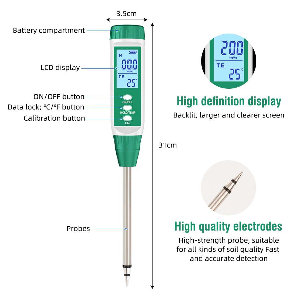 Digital NPK Soil Meter Quick-acting Nitrogen Phosphorus Potassium Nutrient Content Analyzer NPK Soil Detector Fertility Tester for Gardening Agriculture