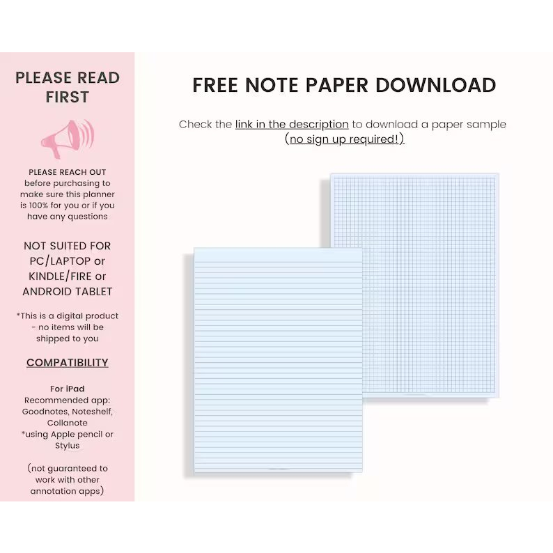 Digital Note Paper, Digital Notes, Note Paper, Lined, Grid, Dotted, Blank, Cornell and Schedule Note