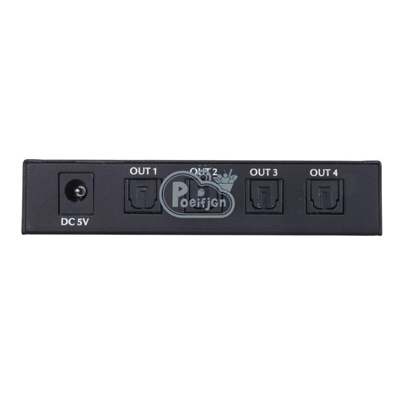 Digital Optical Audio 1X4 Splitter Digital SPDIF Toslink Optical Fiber Audio Splitter 1 in 4 Out Aluminum Alloy(US Plug)