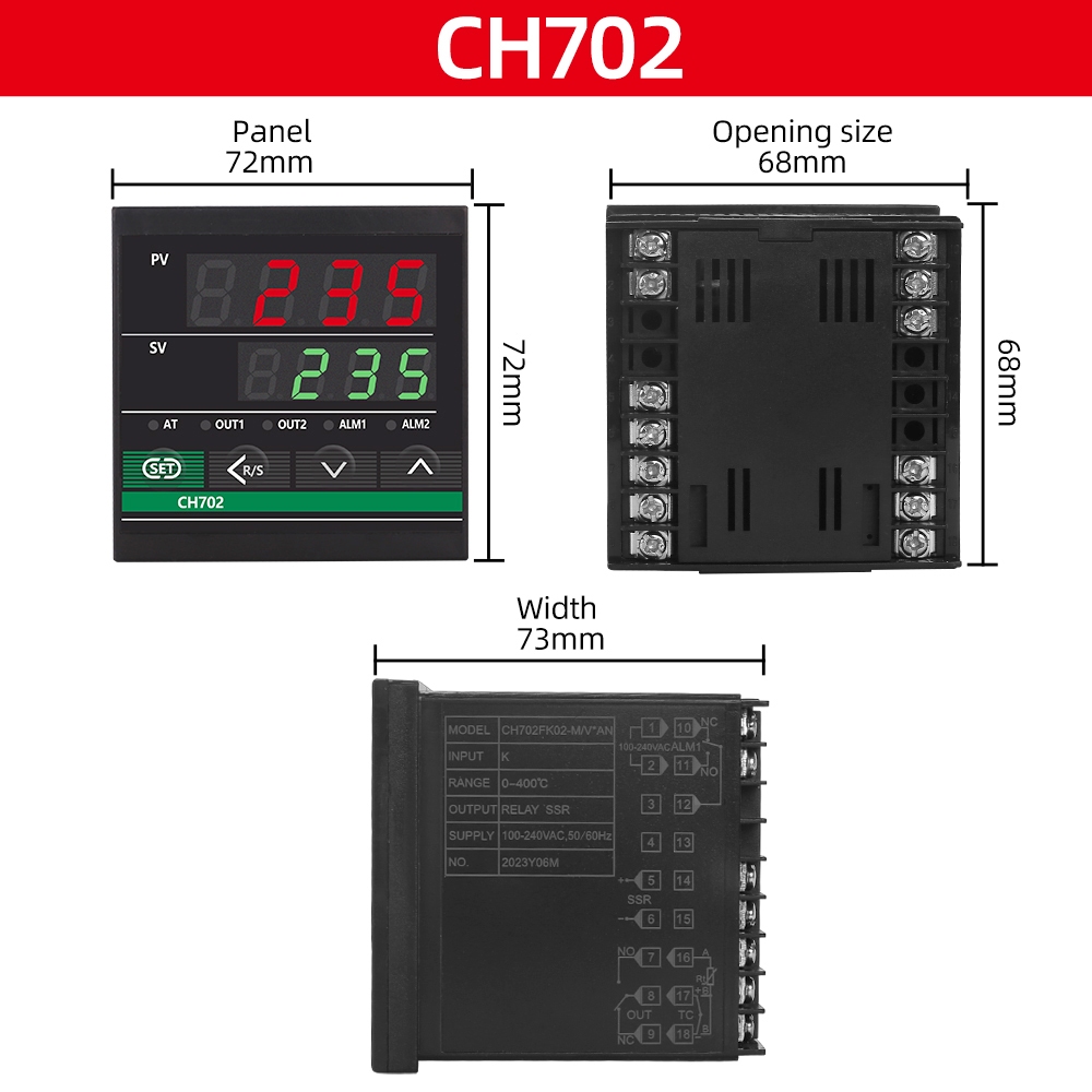 Digital PID Temperature Controller CH102 CH402 CH702 CH902 Relay/SSR Dual Output universal input
