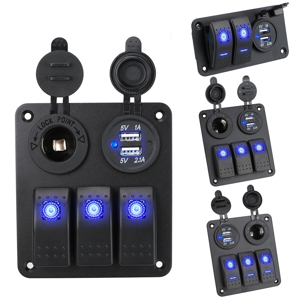 Digital Voltmeter Dual USB Port Outlet Combination 12~24V Circuit Control Boat Car Switch Panel
