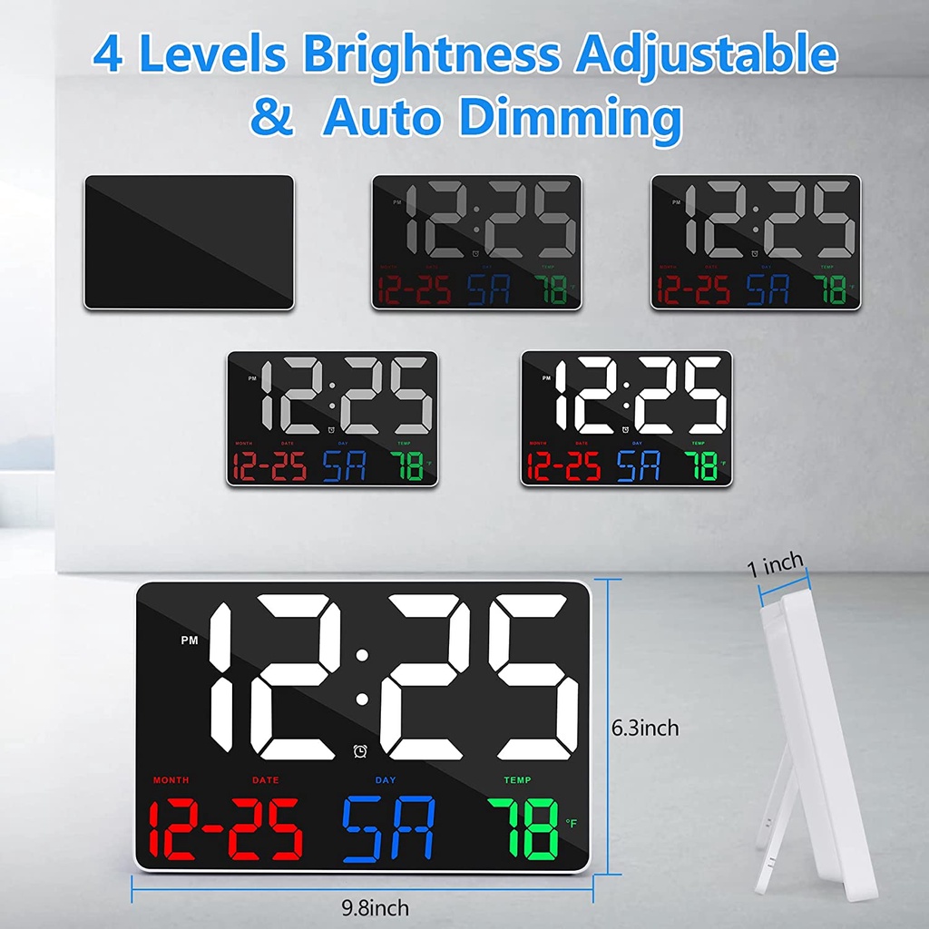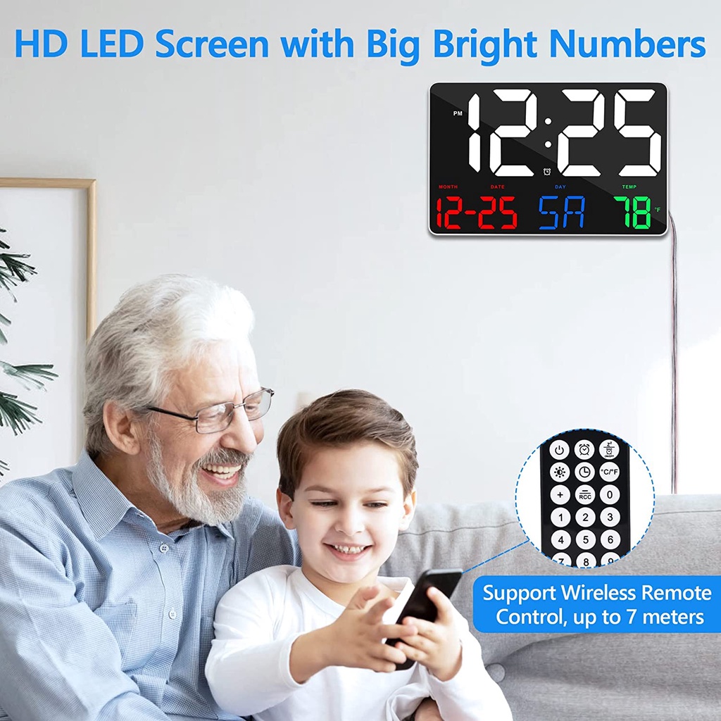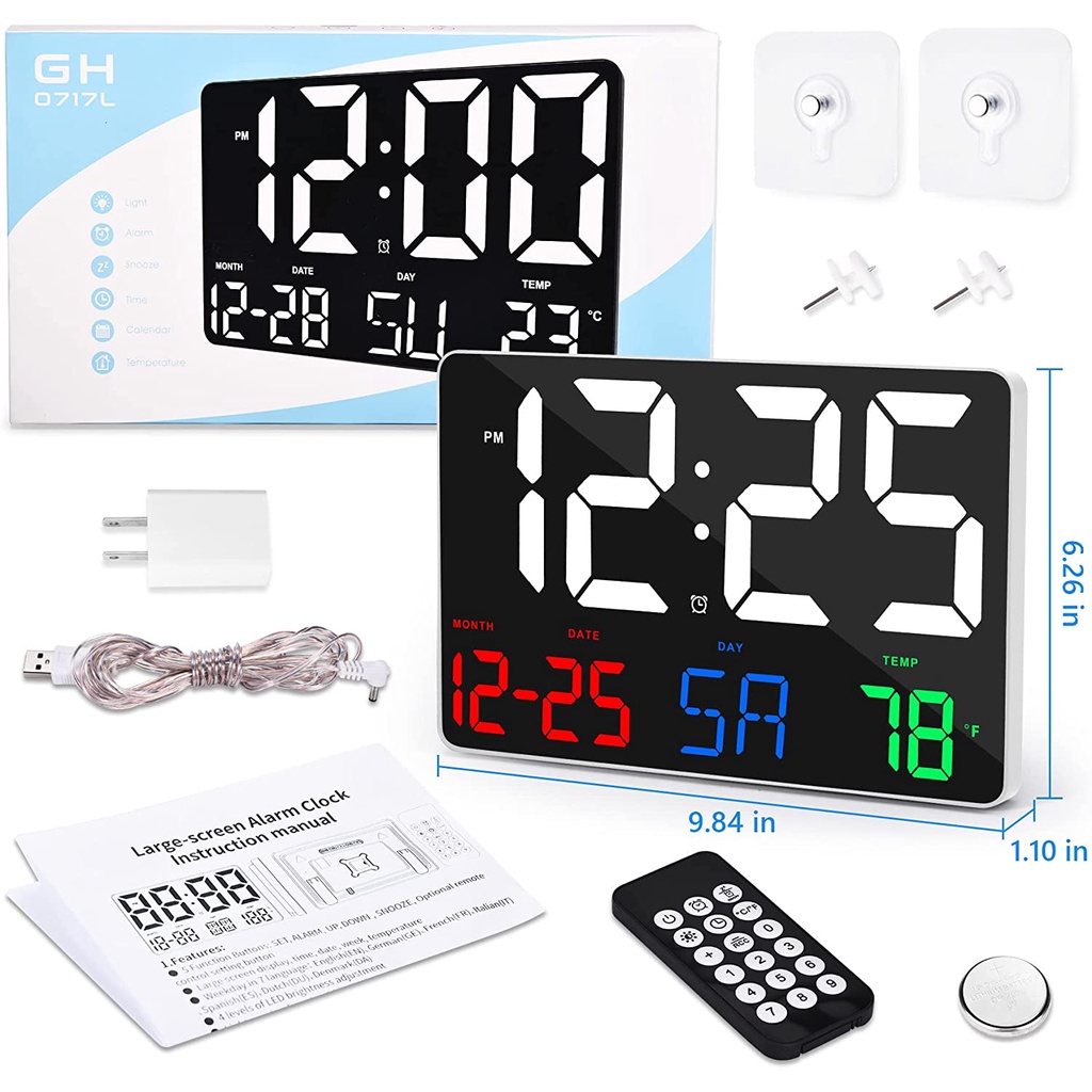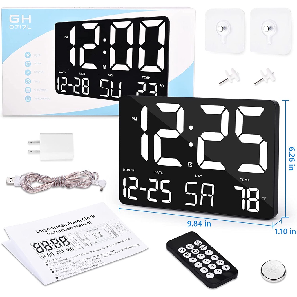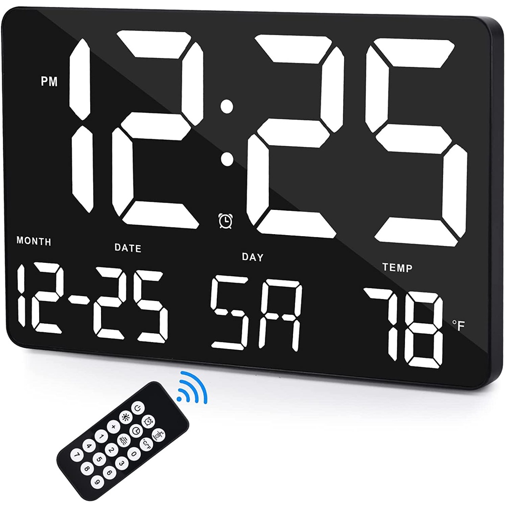 Digital Wall Clock 11.5" LED Digital Alarm Clock Large Display with Remote Control Adjustable Brightness, Calendar, Temperature, Snooze, 12/24 H