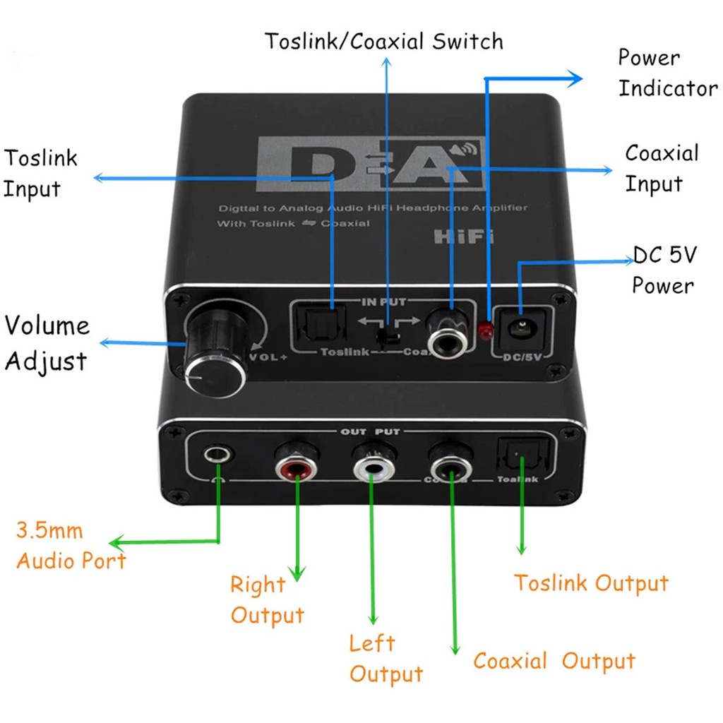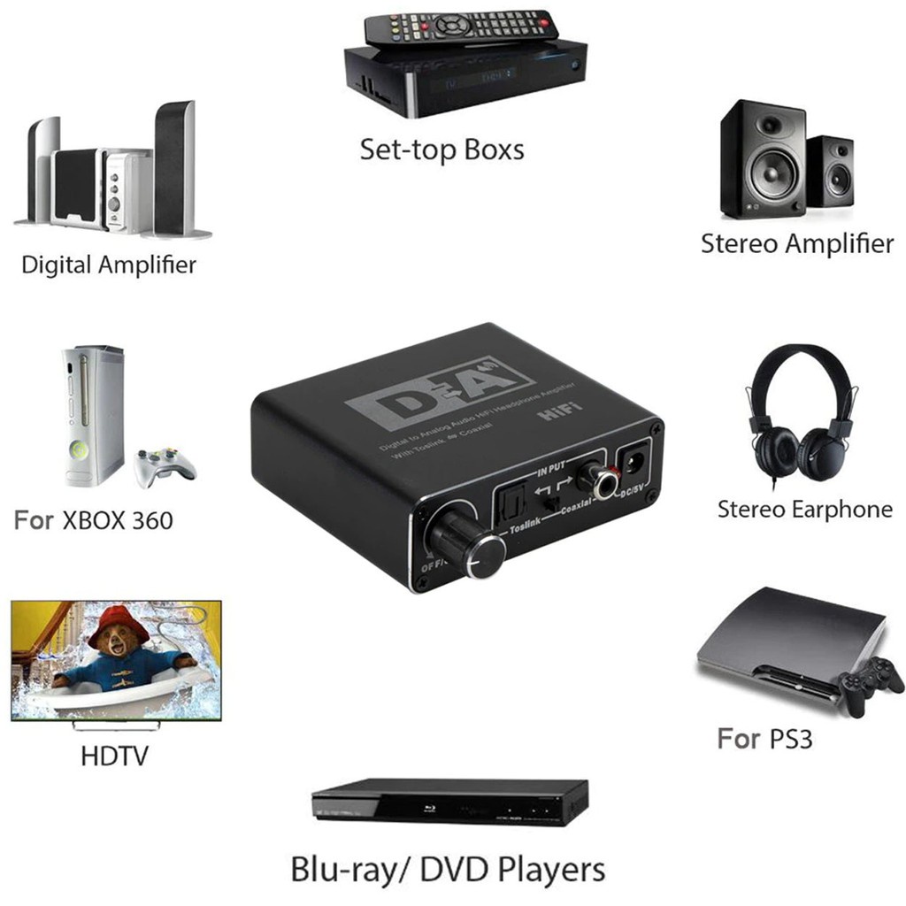Digital to Analog Audio Hifi Headphone Amplifier With Toslink Coaxial video converter
