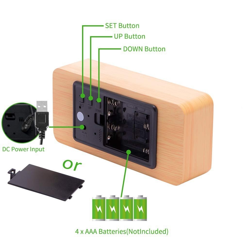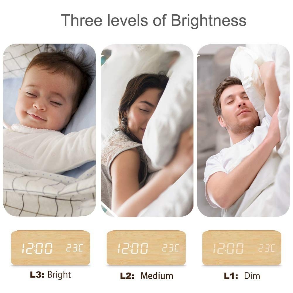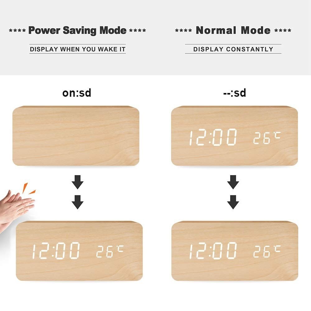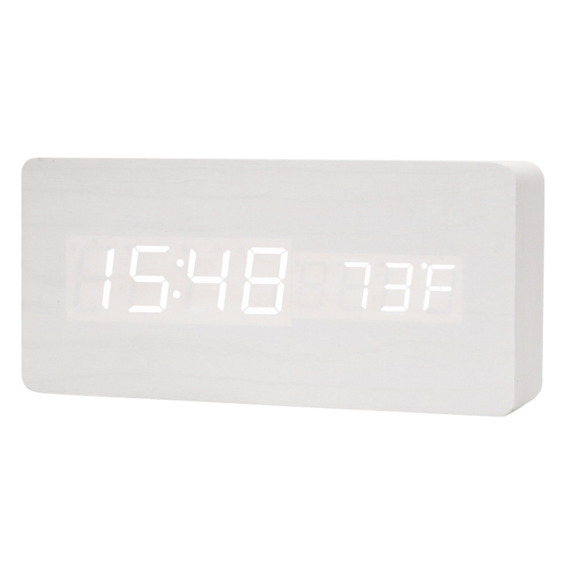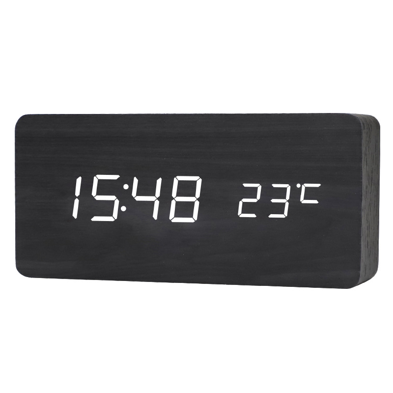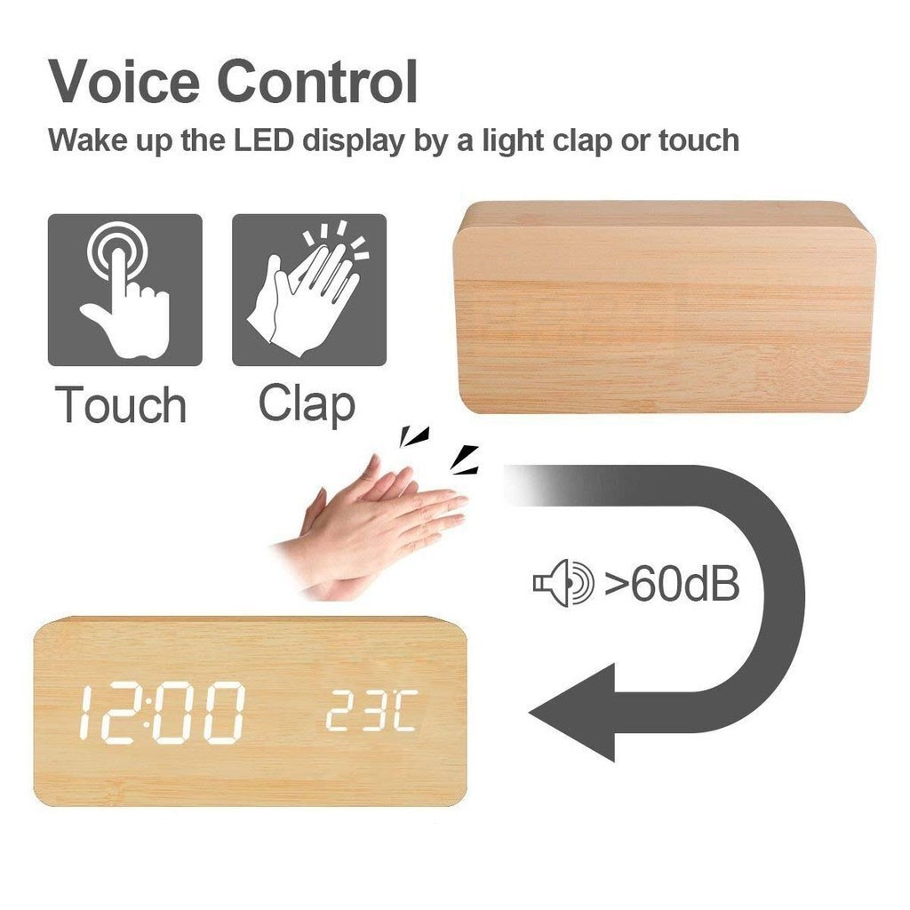 Digital wooden smart voice control alarm clock USB plug-in bedside clock room decor with calendar thermometer clock bell desk clock